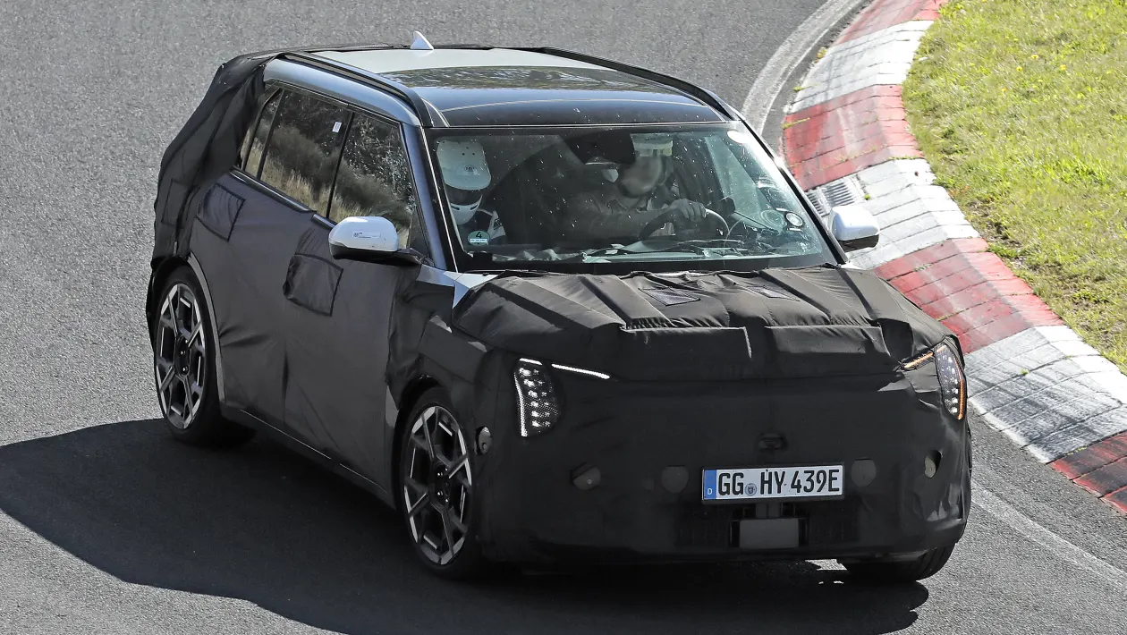 The Kia EV3 GT, a performance-oriented version of Kia’s compact electric vehicle, has been spotted undergoing testing at the Nurburgring track.