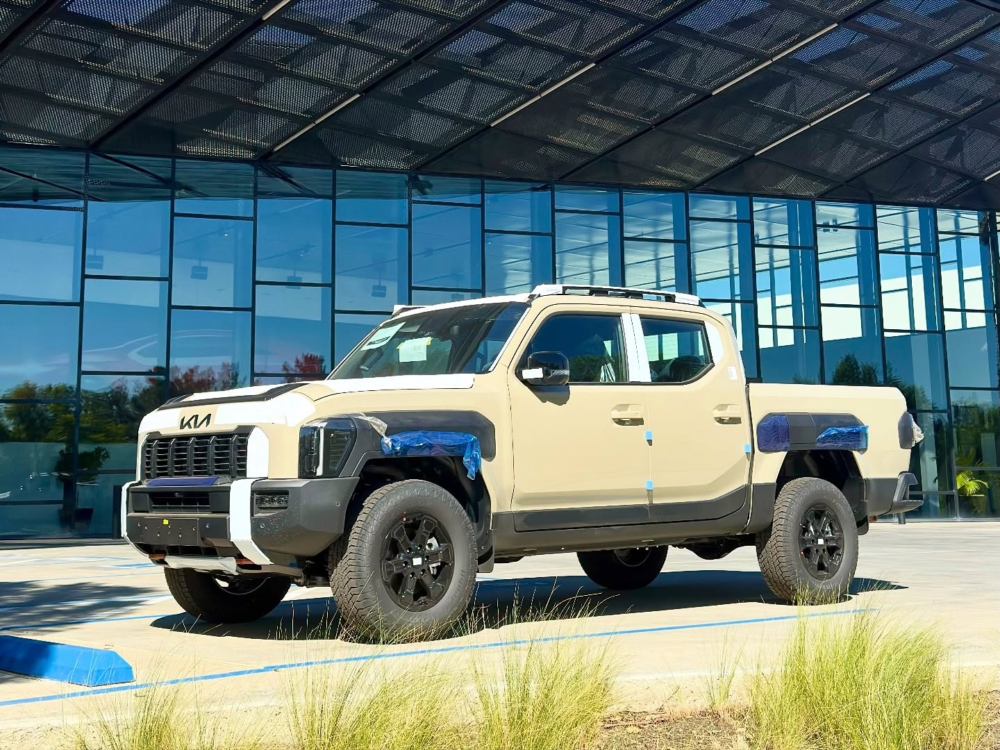 First look at the Kia Tasman WKNDR Concept with body-color overfenders and 35-inch tires.