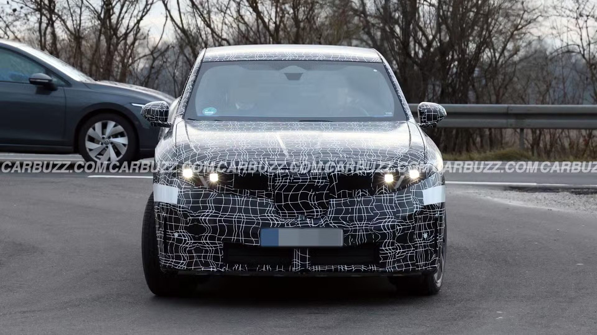 It features a vertical twin kidney grille, a rakish windscreen, and a steeply sloping roofline, setting it apart from its counterpart, the iX3.