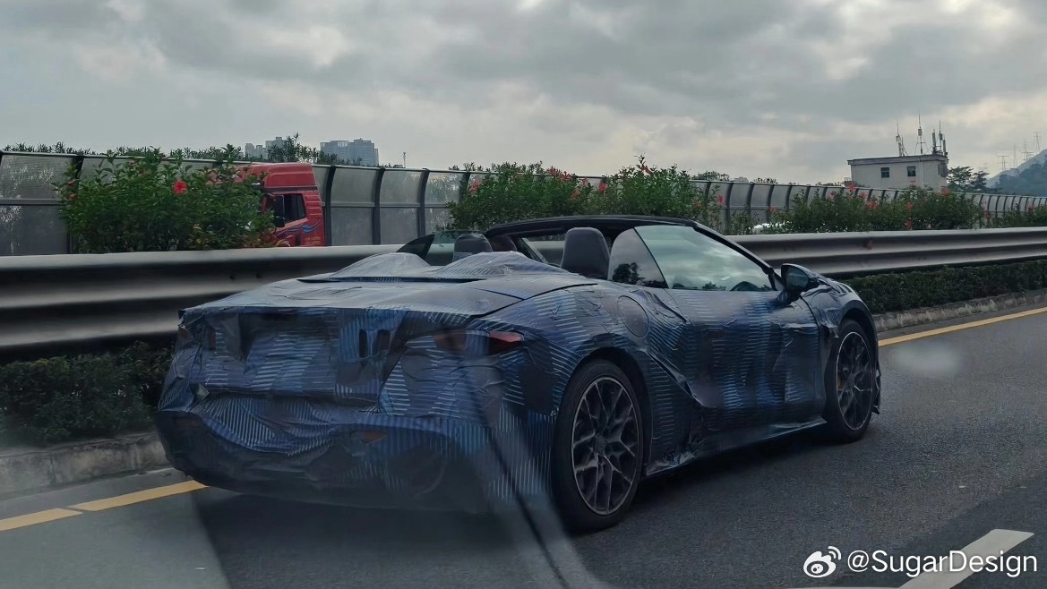 a spy photo of BYD’s new Tengzhong sports car this morning. The car is covered with blue camouflage stickers commonly seen on Tengzhong’s previous models. It has a low body and is not expected to be too large. It adopts a two-door four-seat layout.