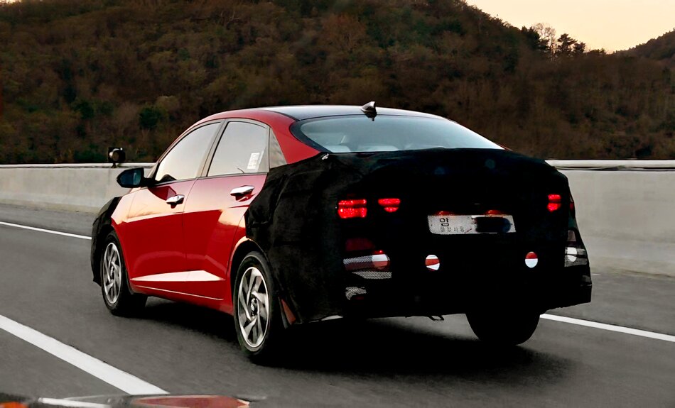 The Hyundai Accent is Getting updates Spy photo from the rear, Accent facelift does not seem to have any major updates. The tail lamps appear to be the same as earlier. The connected tail lamp format is expected to be carried forward as well. While the boot lid section is heavily camouflaged, one can see a subtle hint of the distinctive boot-mounted spoiler, the same as that of the current model, Bumper section could get some updates or some new detailing could be there. While it is quite elegant in its current format, there’s scope to add some more character to the bumper profile. Other features such as a heavily raked windshield and shark fin antenna appear to be the same as earlier, Side profile is also largely the same as earlier. Even the alloy wheels have the same design. Hyundai Accent has blacked-out B pillars, traditional door handles, a slightly rising belt line, polygonal ORVMs with integrated turn signals and a tapering roof. Sharp creases in the bodywork create a sporty, athletic stance for the sedan.