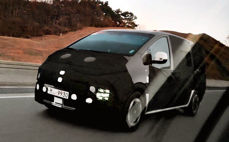 the Staria electric vehicle in the photo has no camouflage at all to hide its design, and contains the core elements of an electric vehicle based on the Staria Lounge. The front of the exterior reflects the horizontally long seamless horizon lamp and vertical cubic headlamp. However, the grille has been removed and the charging port has been placed on the driver’s side, suggesting that it is an electric vehicle.