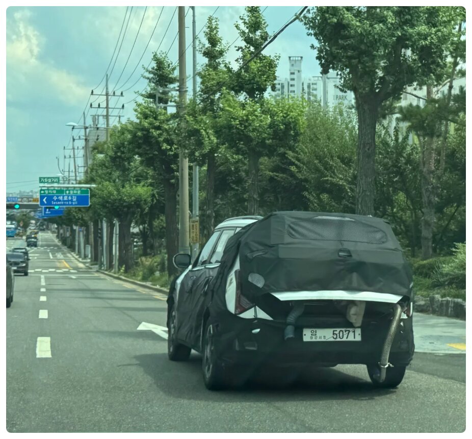 Kia Seltos full-change model undergoing exhaust gas testing.