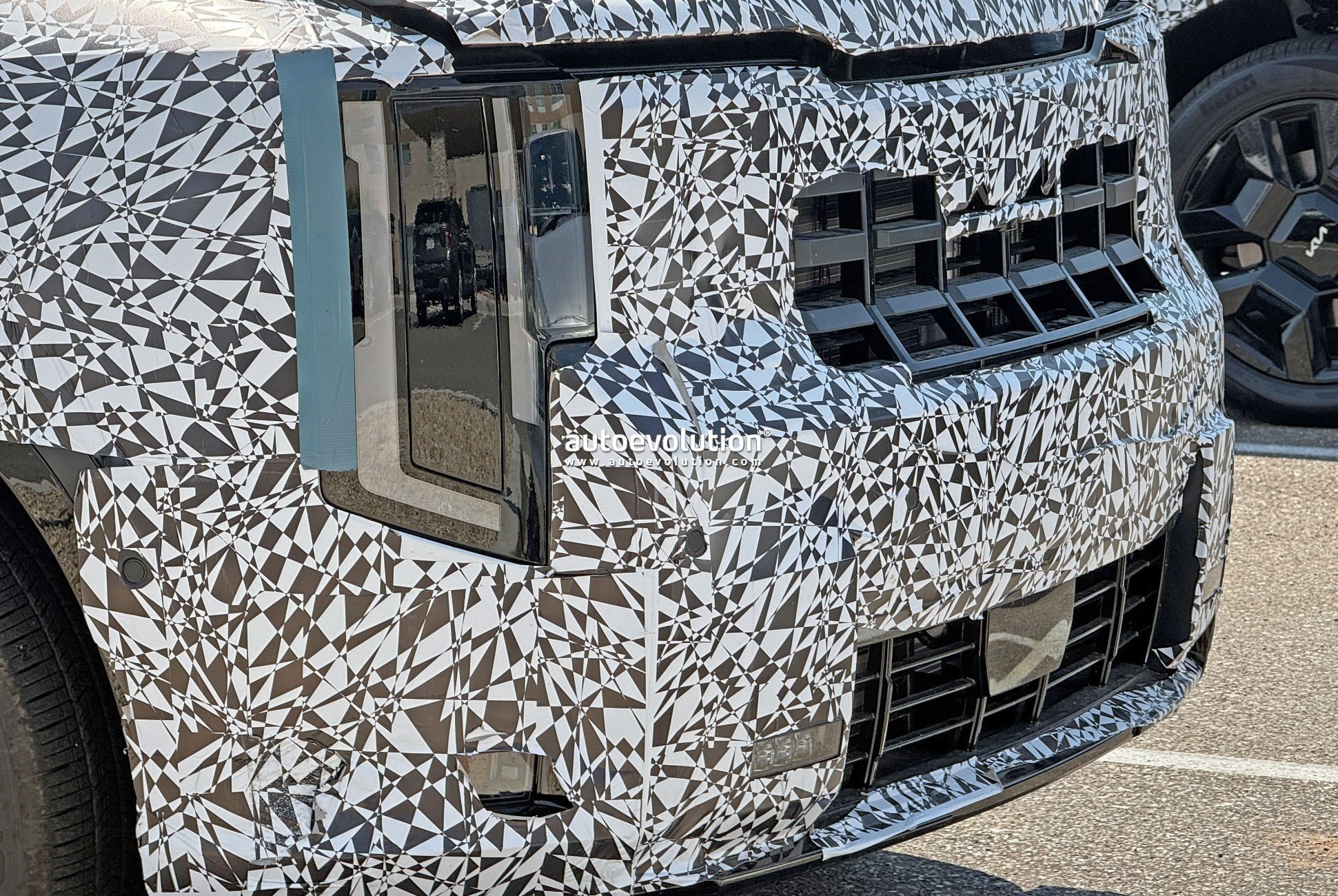 The most striking update is the boxier, more upright aesthetic, led by a bold egg-crate grille and vertical headlamps with dramatically enhanced LED daytime running lights. Two front bumper designs have been spotted: a more refined version, and a rugged variant with integrated recovery hooks and all-terrain tires, likely reserved for an off-road-oriented trim.