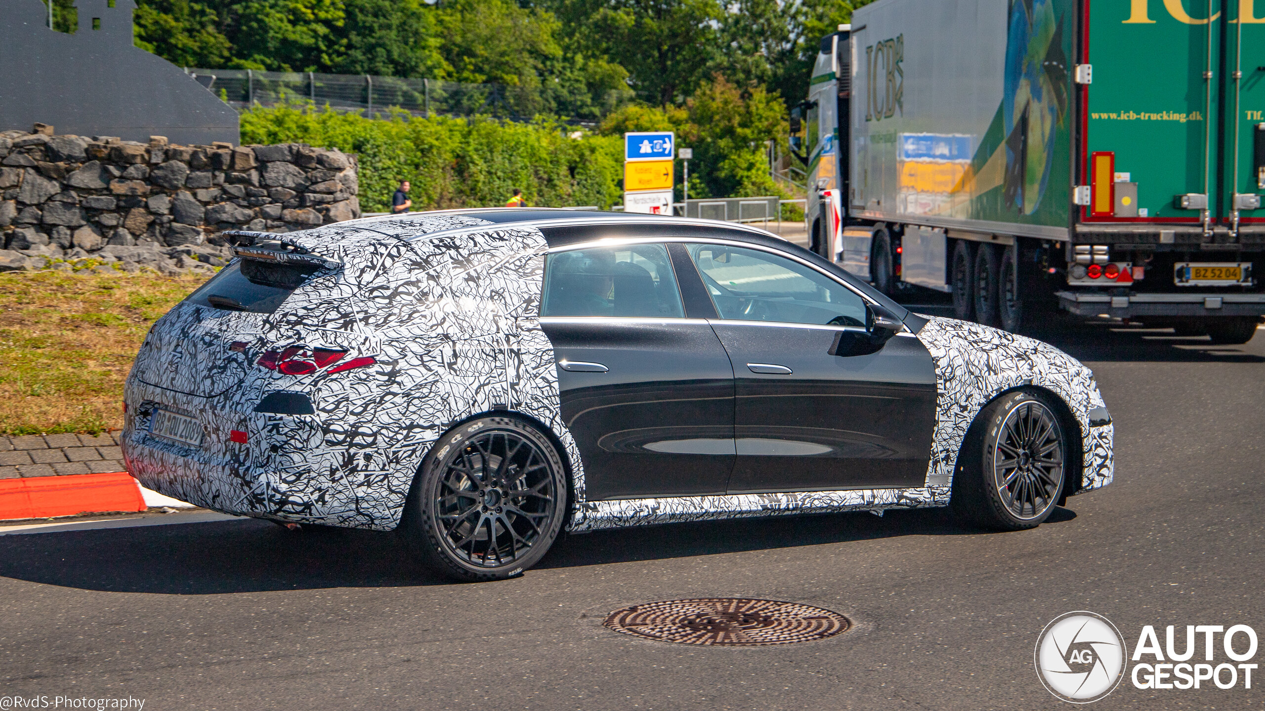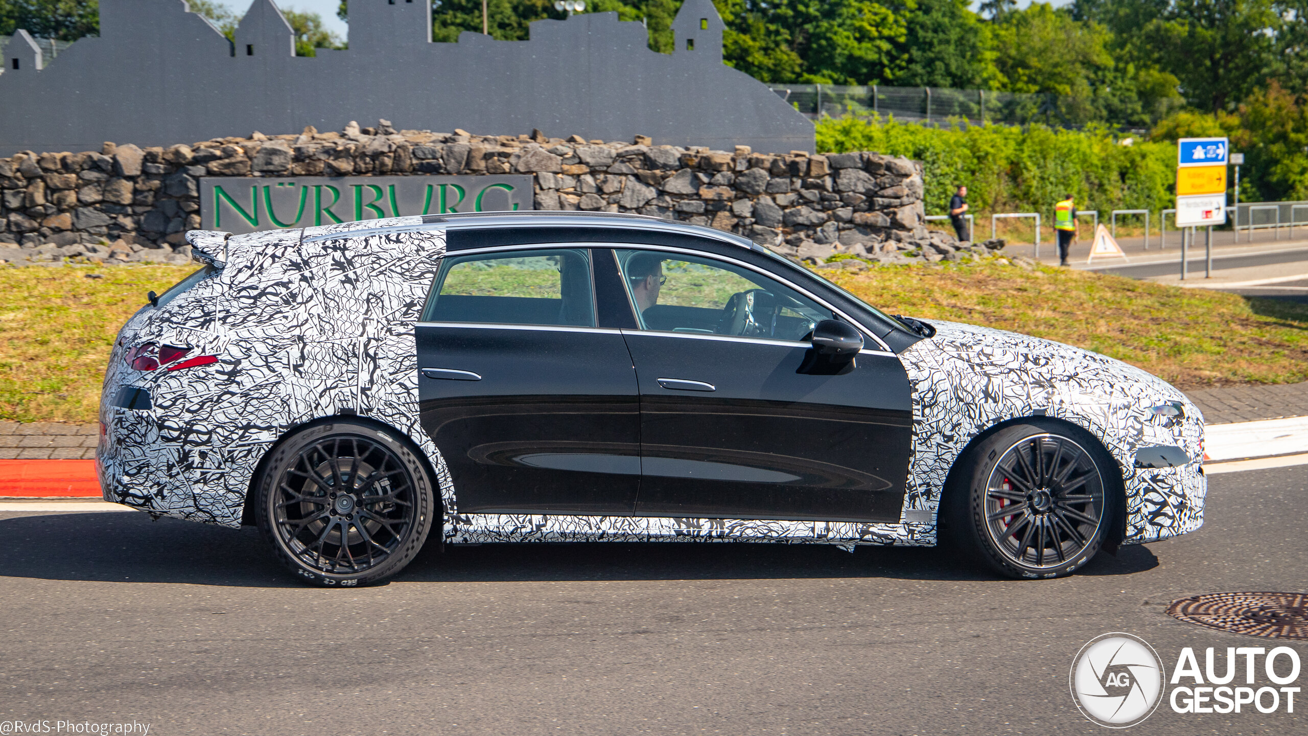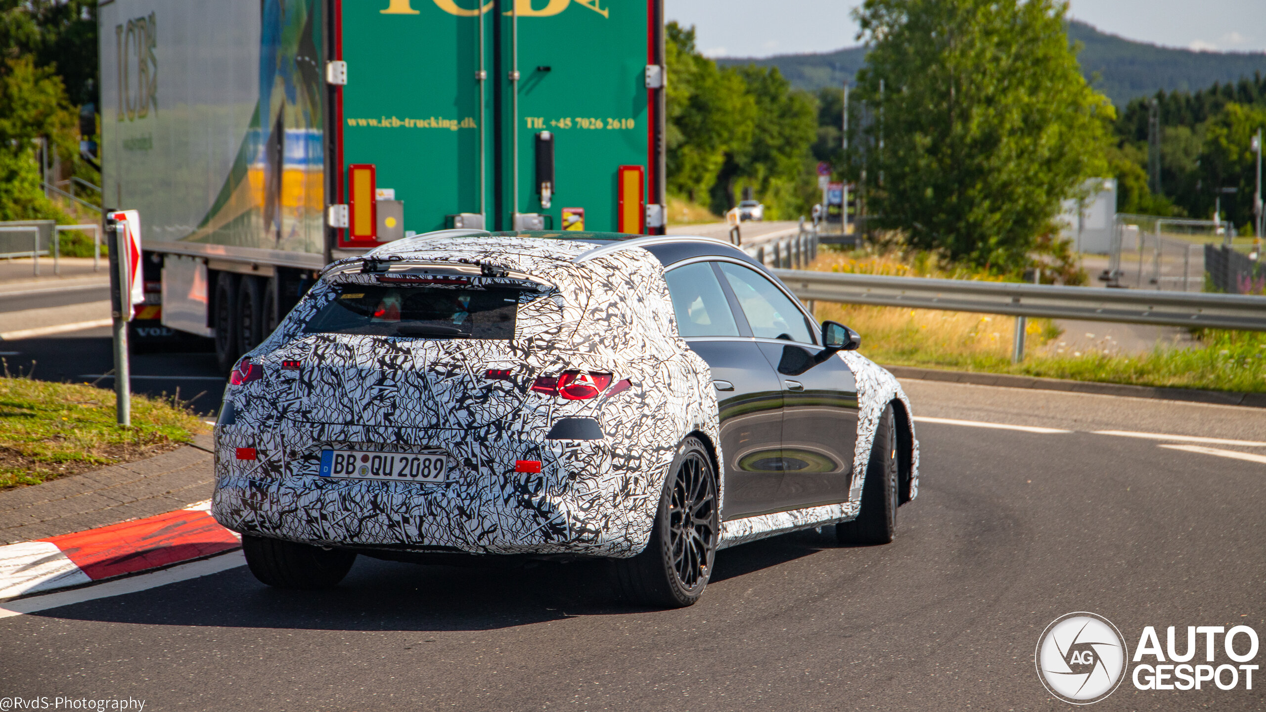 These shots of the new CLA 45 shooting brake show. We’ve already spotted the sedan version of the AMG CLA 45 EV multiple times, plus wagon-bodied, non-AMG variants of the combustion CLA. But this is our first sighting of the hot EV with the long-roof body.