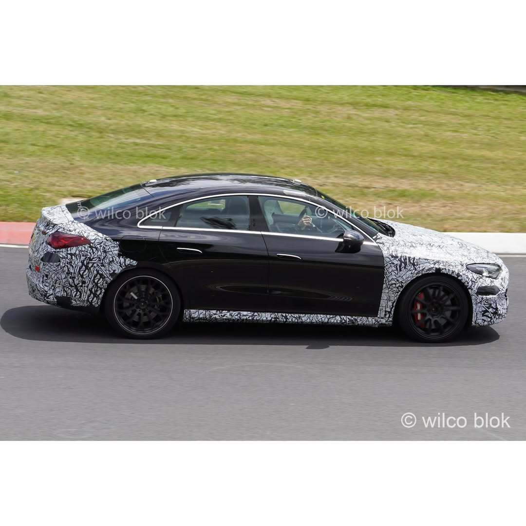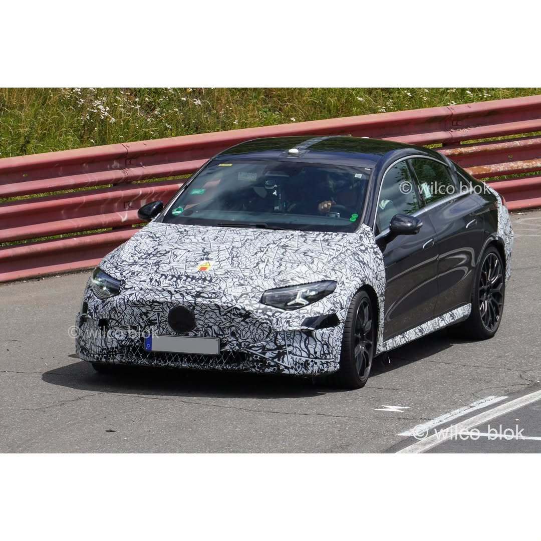 The 2026 Mercedes-AMG CLA EQ Performance EV is an upcoming electric vehicle that has been spotted during testing with an emphasis on performance, as indicated by its active rear spoiler.