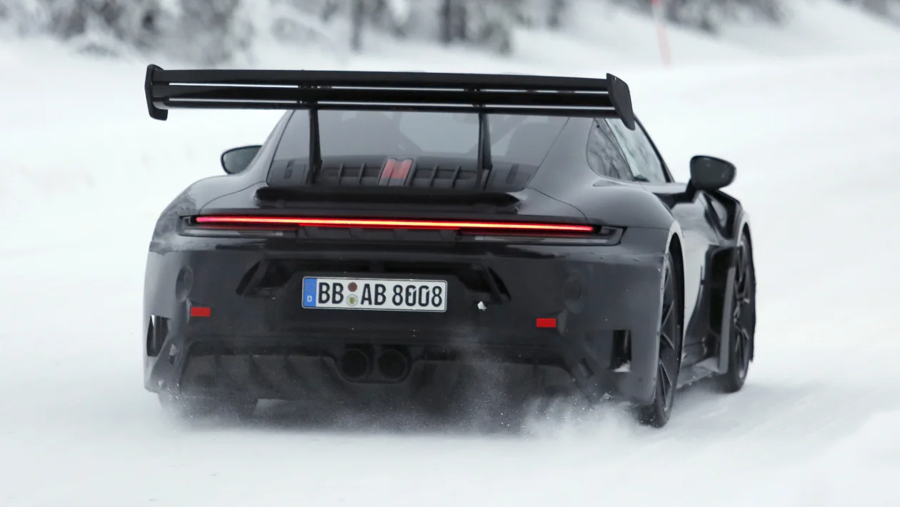 The upcoming Porsche 911 GT3 RS (2026) has been spotted undergoing testing at the Nürburgring, with speculation arising about a possible transition to a turbocharged engine, which would be a first for the GT3 RS line known for its high-performance naturally aspirated powertrains.