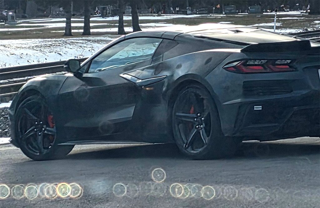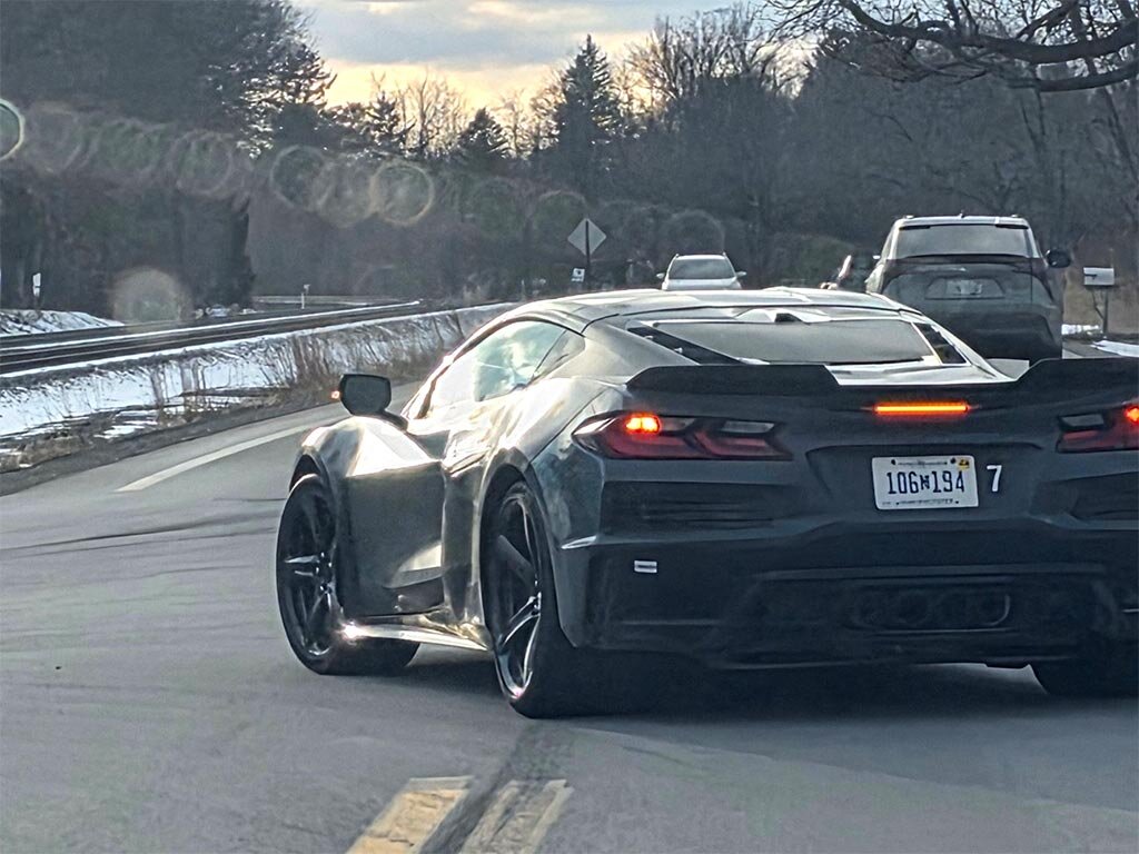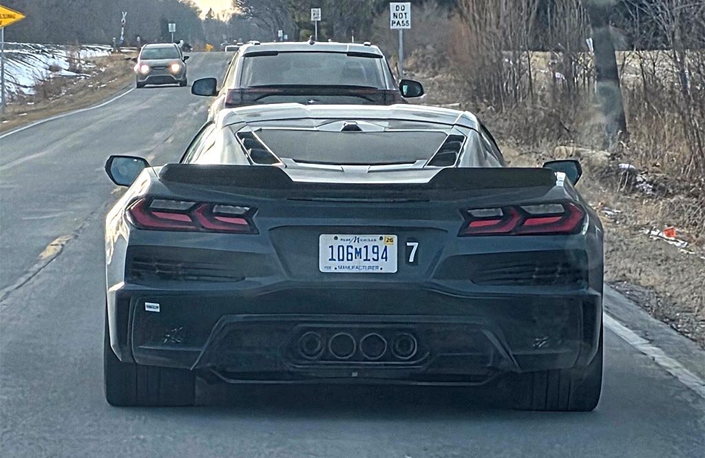 Spy photos posted to Mid Engine Corvette Forum shows what appears to be a C8 Corvette Grand Sport mule sporting a major tell. The prototype wears the widebody Z06 rear fenders but backs them with a set of exhaust tips that changes everything.