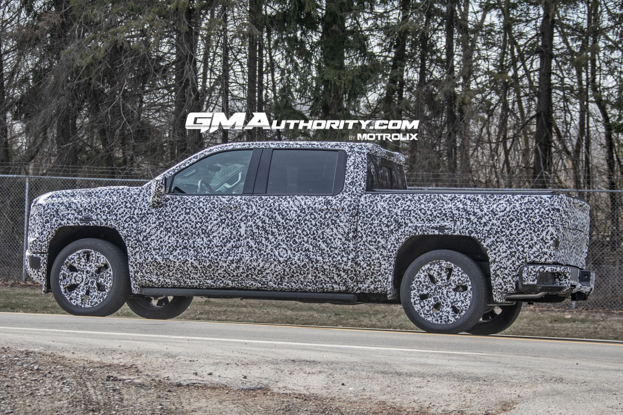 - Body styling shows more pronounced fenders, a new edgier DLO on the rear door, a cab-mounted spoiler likely housing antennas, and squared-off wheel openings distinct from the 2027 Silverado.