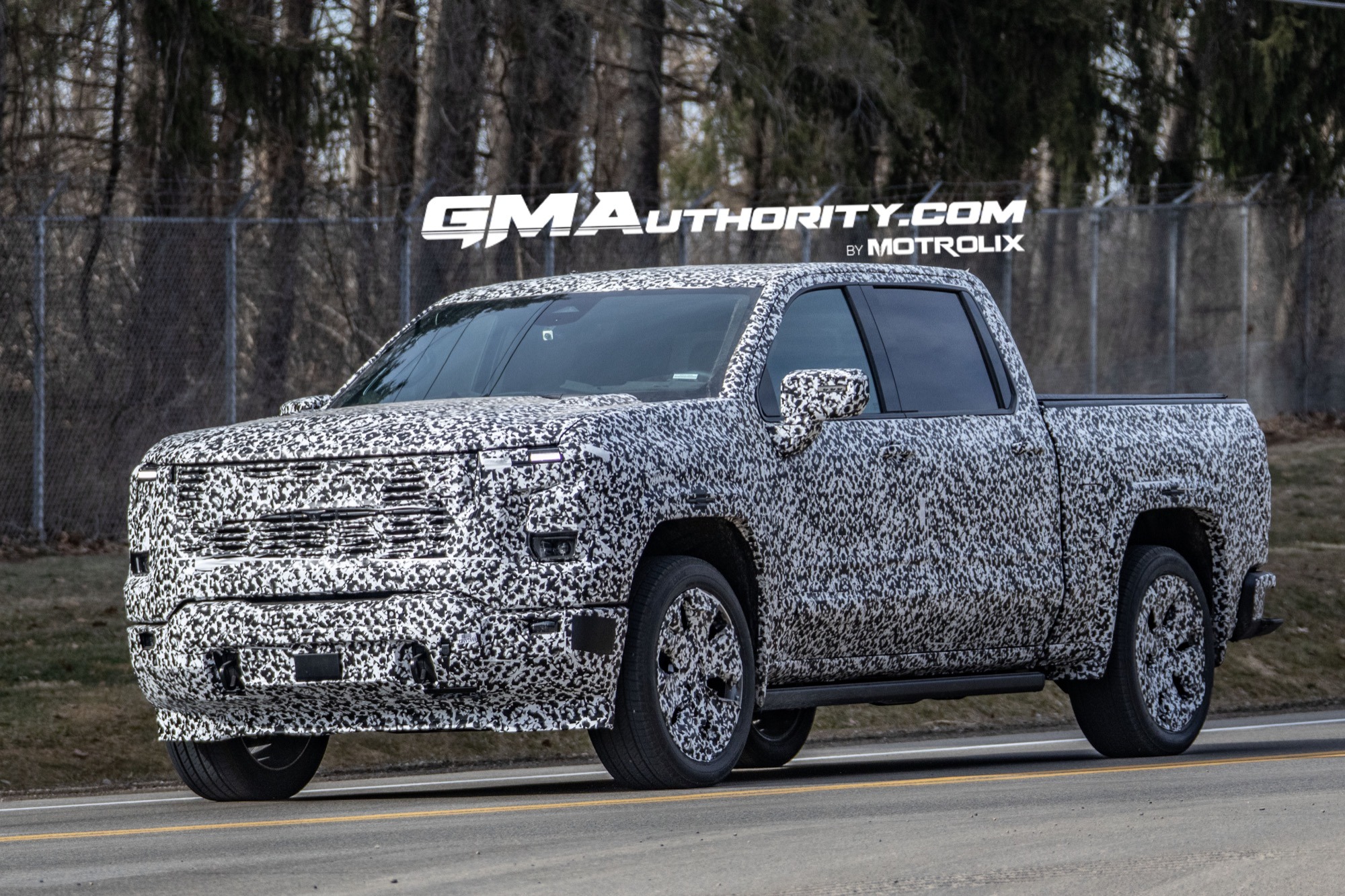 Despite the camouflage, the spy shots reveal the truck’s front grille, headlight arrangement, and rear taillights and tailgate, which all appear to match the patented design.