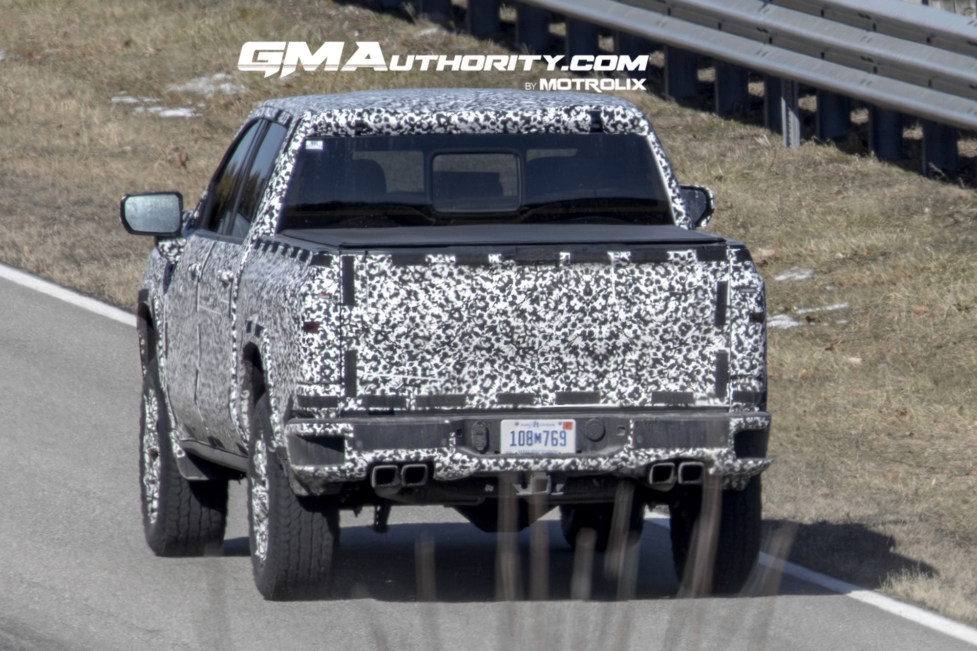 - The rear includes a quad-tip exhaust and a conventional tailgate (Multi-Flex expected as optional), with a reshaped center step on the CornerStep bumper.