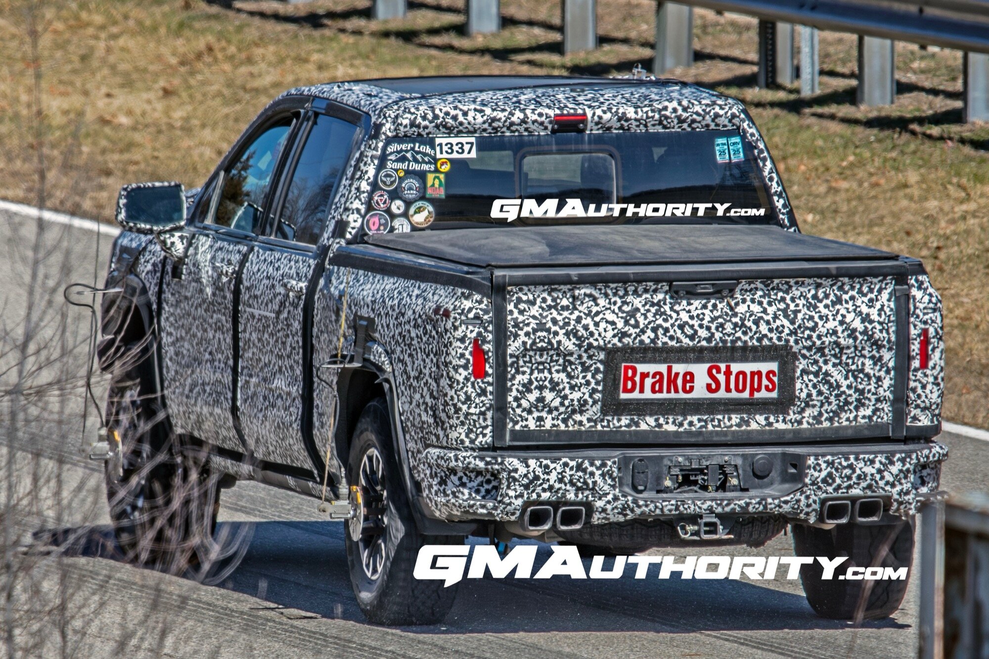 - Rear design hints at Sierra EV-inspired taillights, a MultiPro tailgate with similar styling, a new sliding rear window, and a revised bumper with dual quad-tipped exhaust and updated CornerStep.