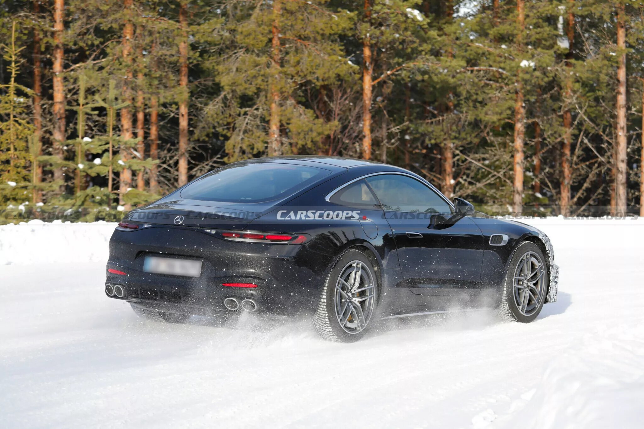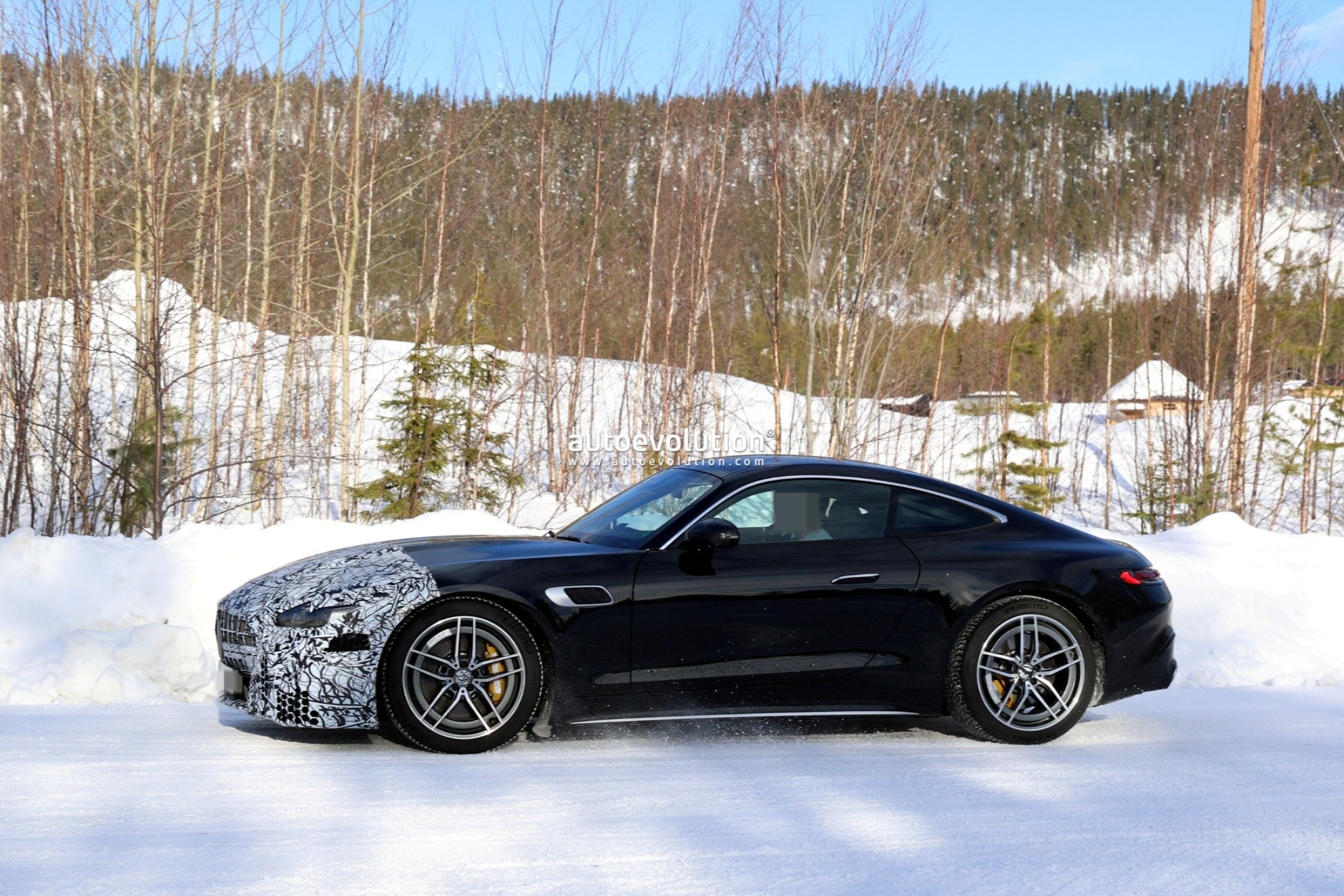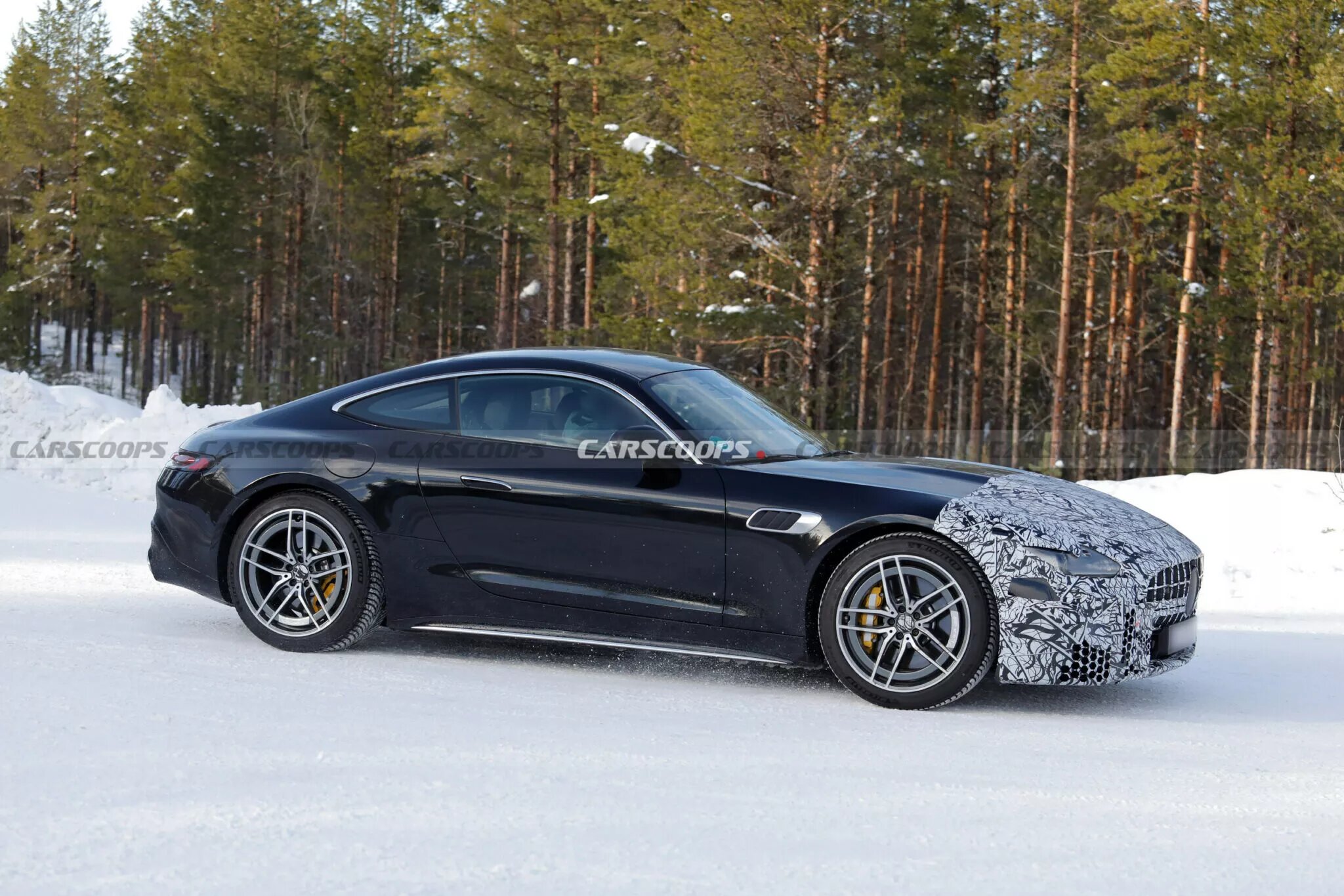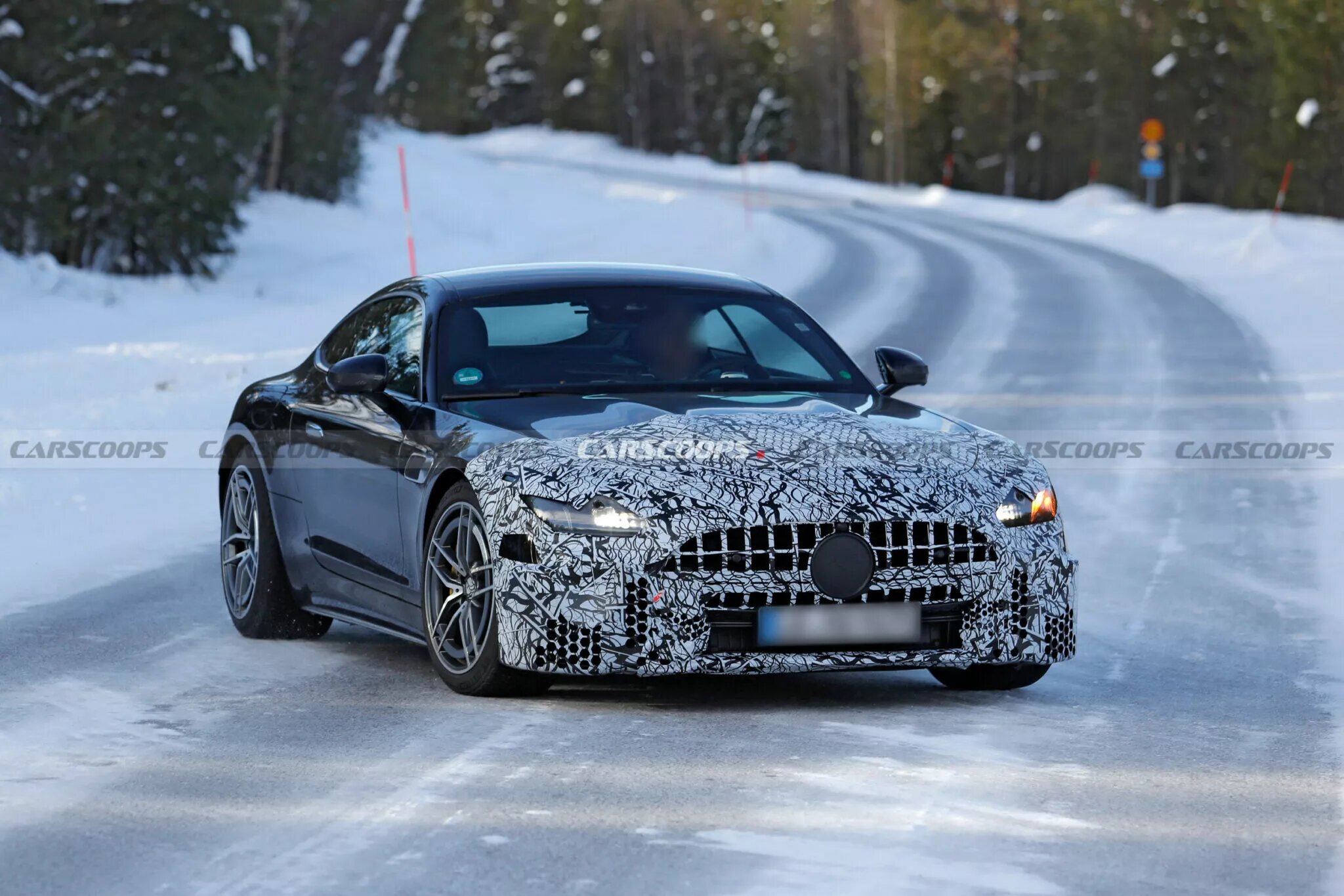 The hood camouflage doesn’t hide a carbon panel or extra air vents; it’s purely a coincidence, even though what’s being tested in this unit is mounted on the front axle. As you can see, this is one of the most exclusive mechanical versions in the range, a GT 63 S powered by the powerful 4.0-liter twin-turbo V8 engine.
