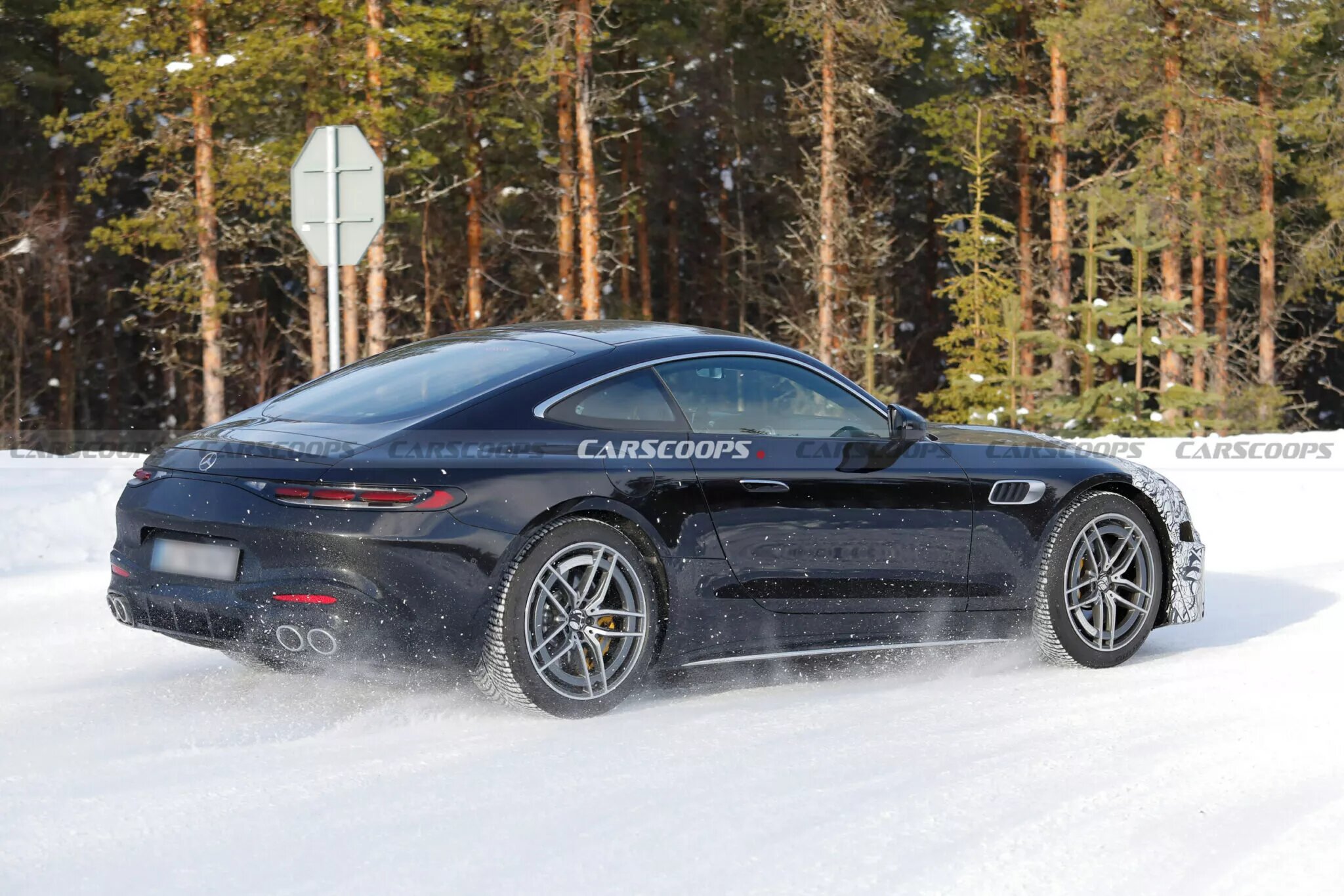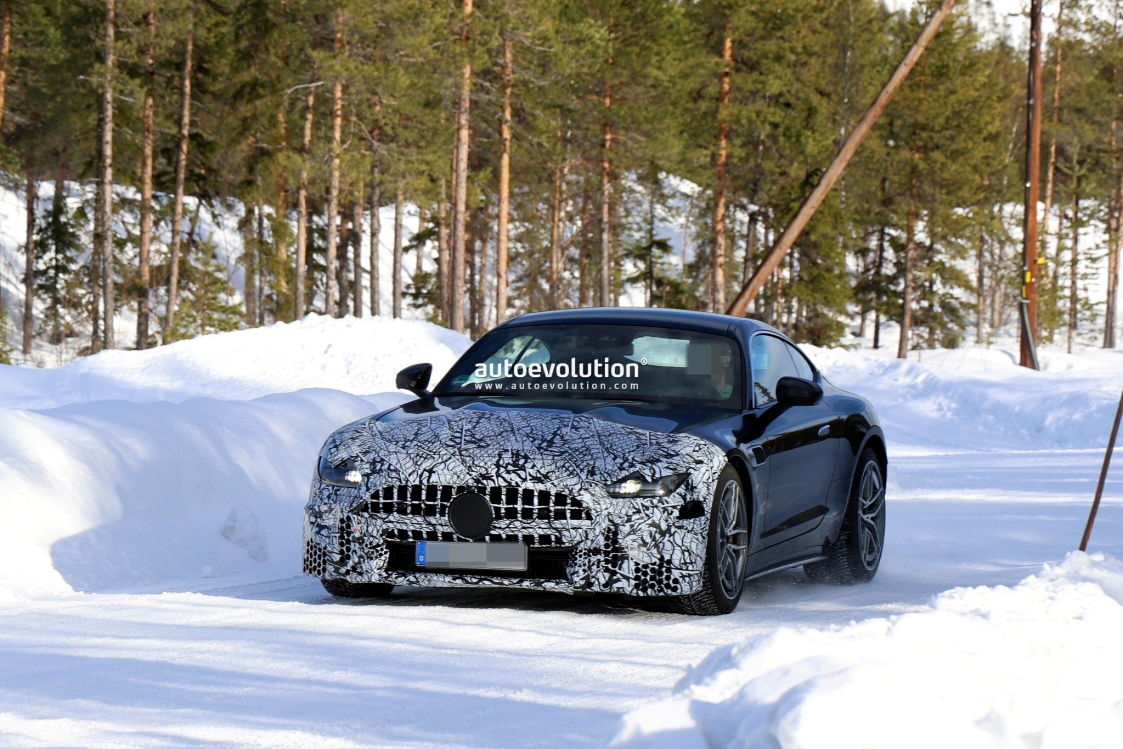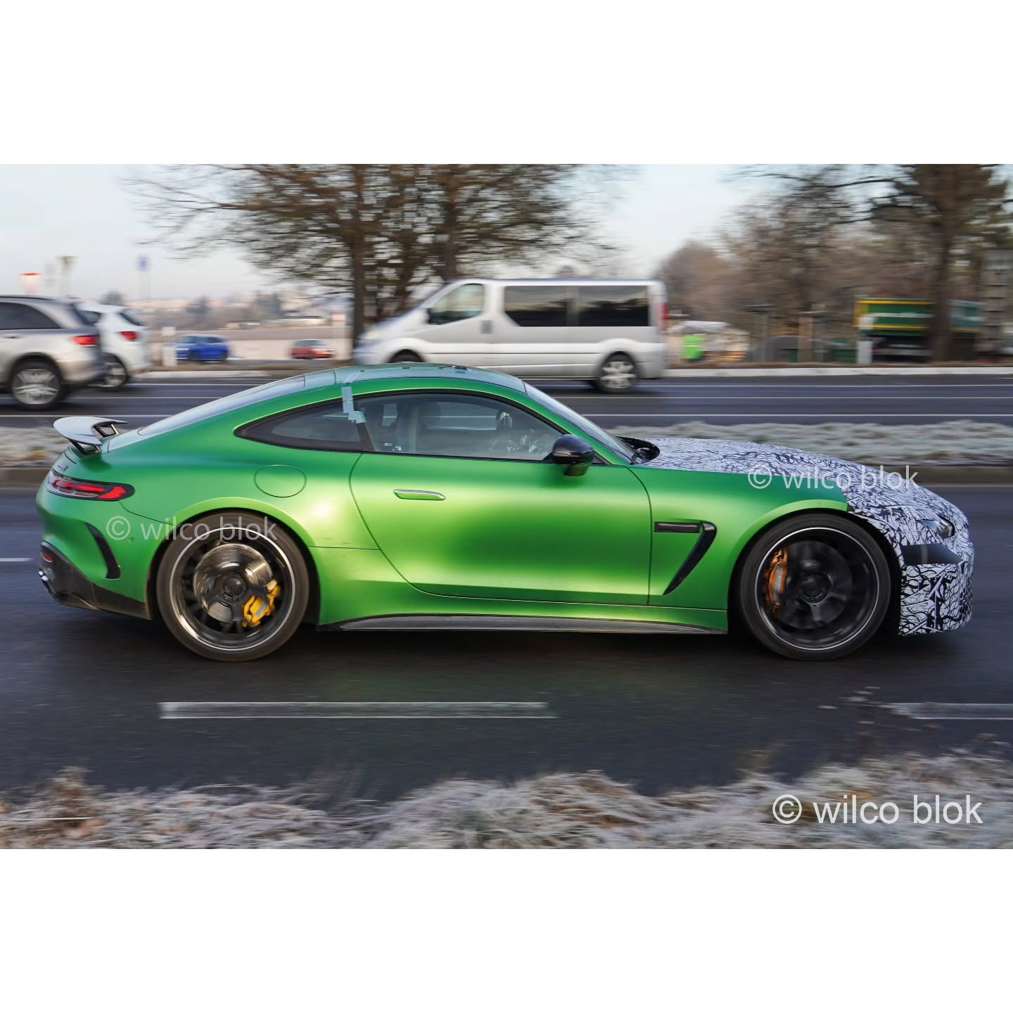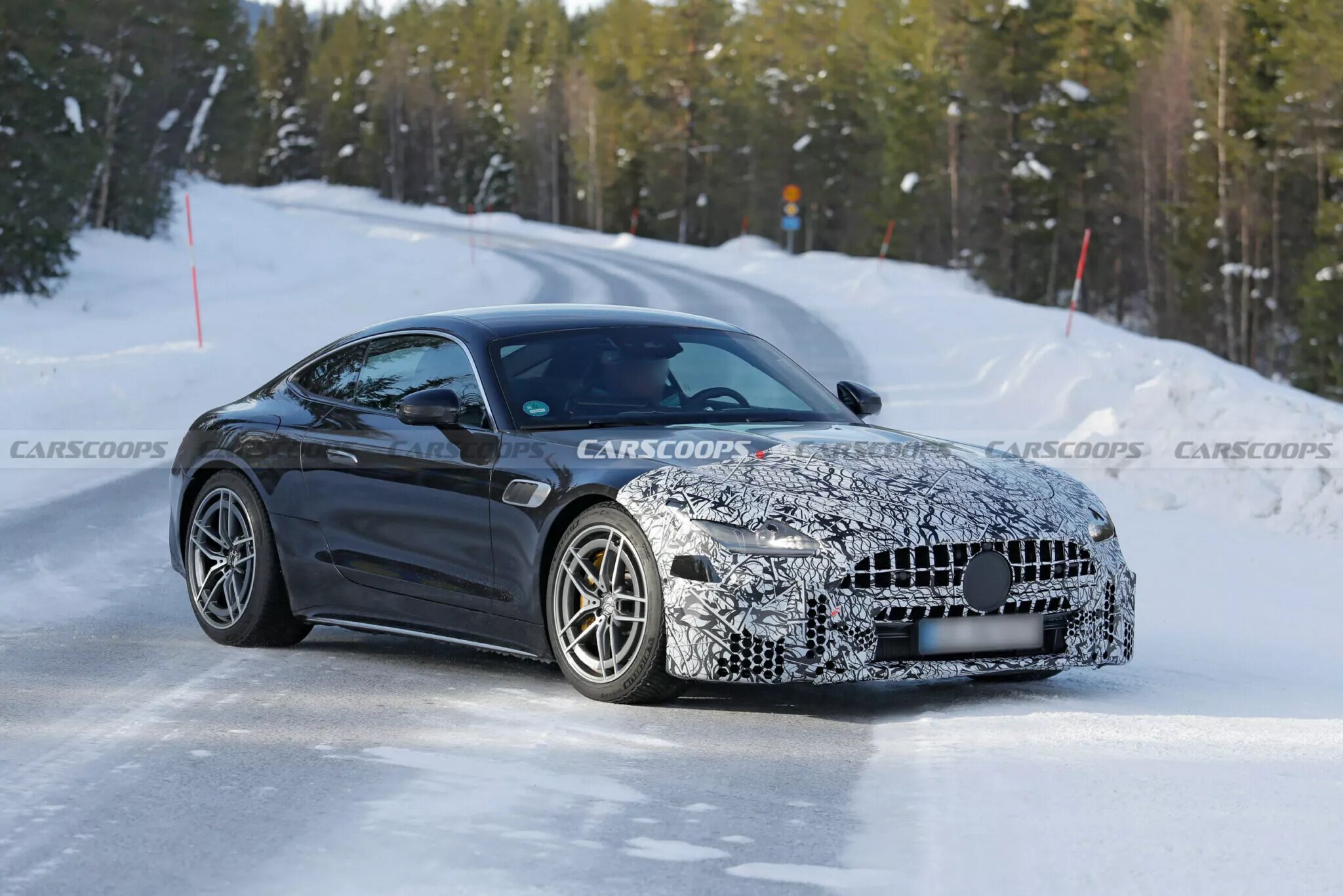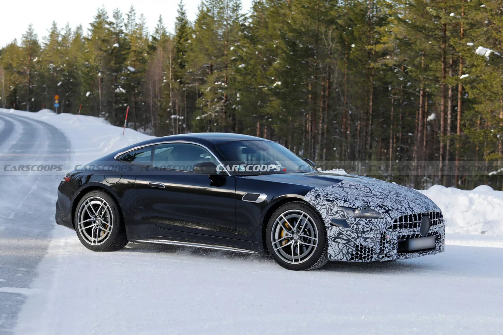 The hood camouflage doesn’t hide a carbon panel or extra air vents; it’s purely a coincidence, even though what’s being tested in this unit is mounted on the front axle. As you can see, this is one of the most exclusive mechanical versions in the range, a GT 63 S powered by the powerful 4.0-liter twin-turbo V8 engine.