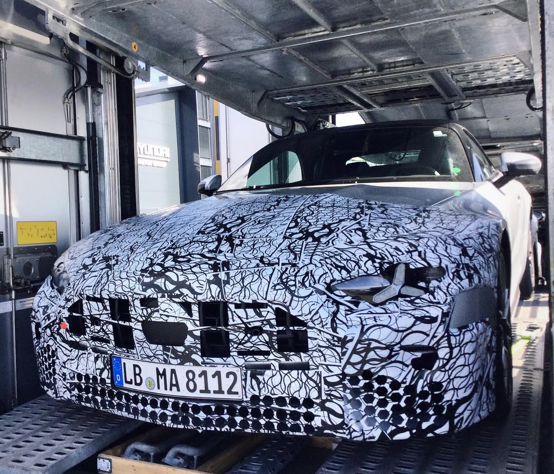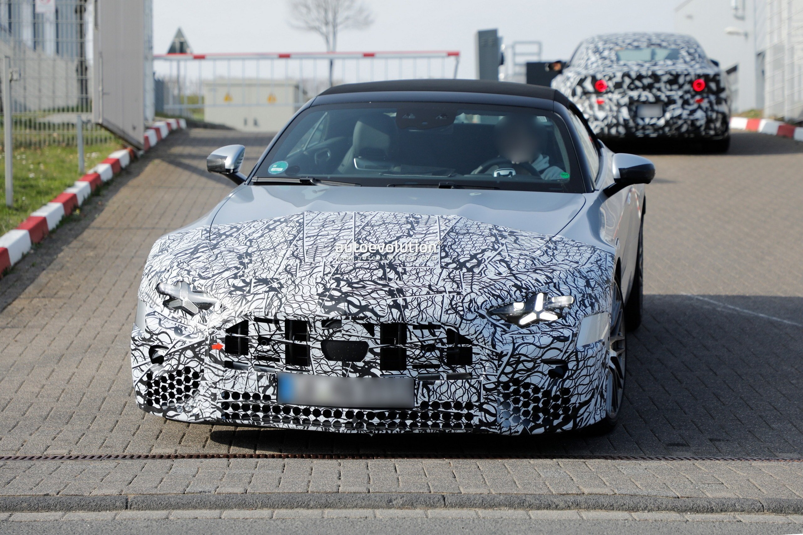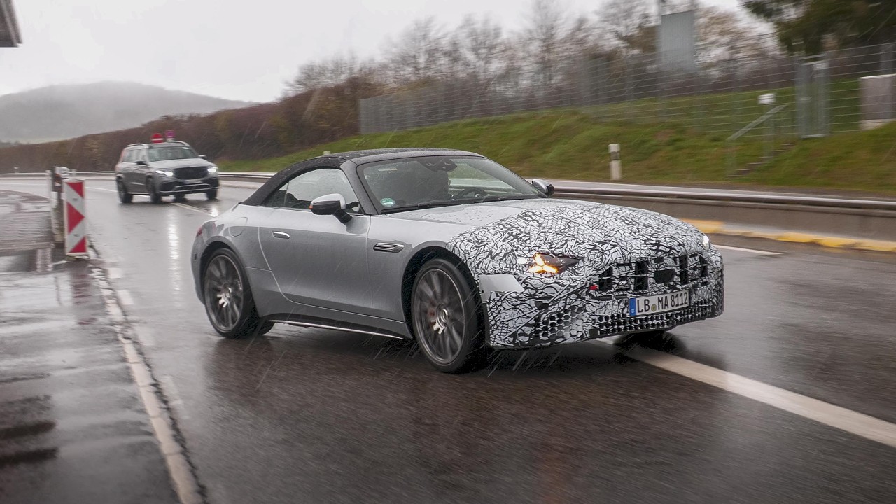 Our spy photographers have spotted a prototype of the new 2027 Mercedes-AMG SL. The sighting took place in broad daylight on open-to-traffic southern European roads. The test vehicle, which you can see in the images illustrating this article, features the German company’s signature camouflage for mid-cycle updates. This camouflage is focused on the front end.