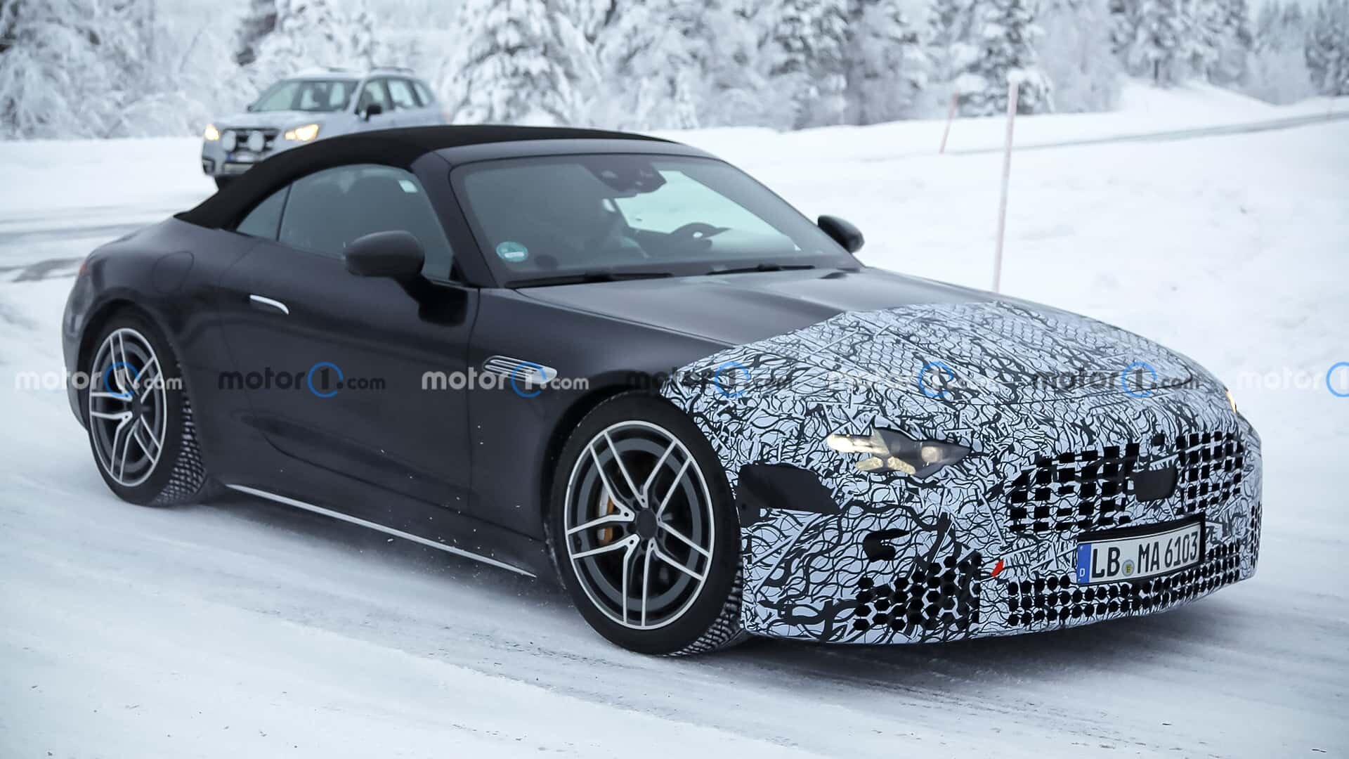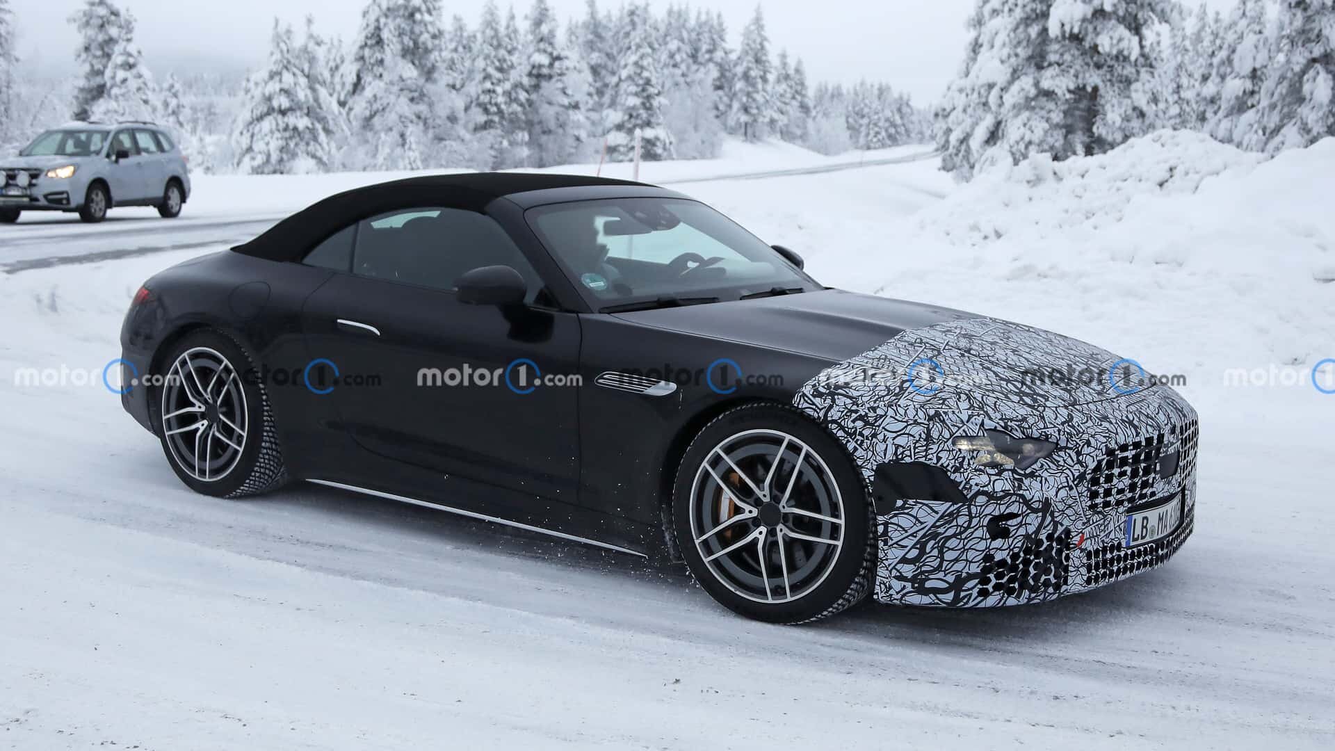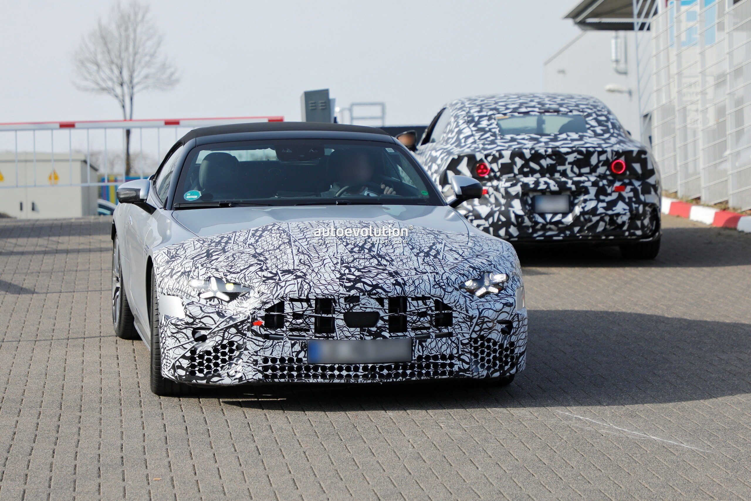 Our spy photographers have spotted a prototype of the new 2027 Mercedes-AMG SL. The sighting took place in broad daylight on open-to-traffic southern European roads. The test vehicle, which you can see in the images illustrating this article, features the German company’s signature camouflage for mid-cycle updates. This camouflage is focused on the front end.