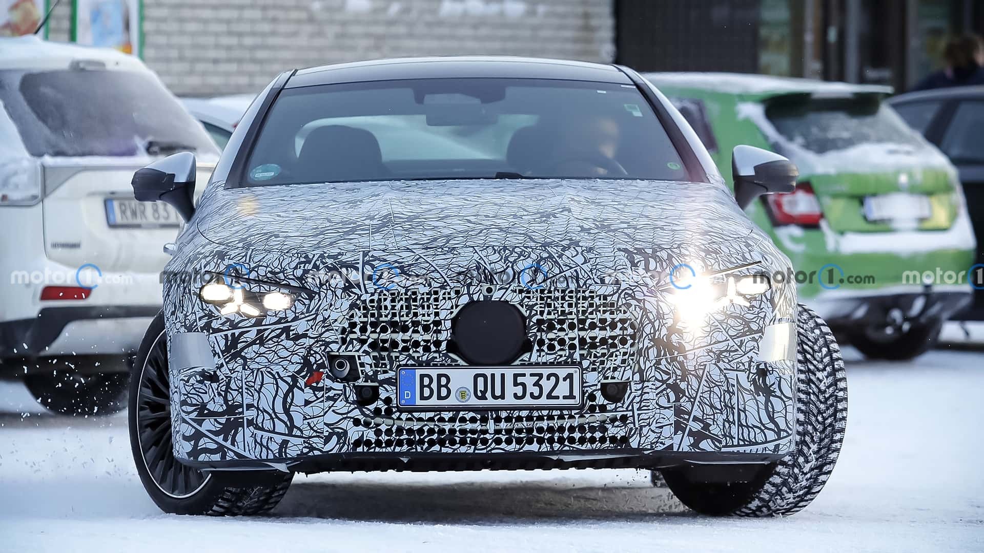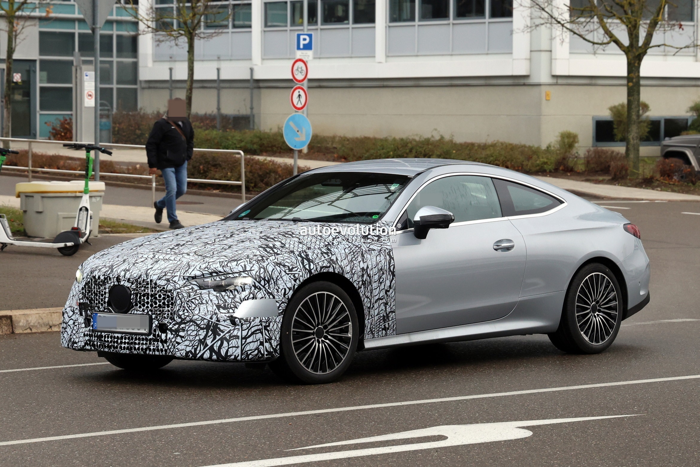 First pictures of the Mercedes CLE facelift, a refreshed grill and new front bumper. Rear looks untouched. And no star-shaped headlights?