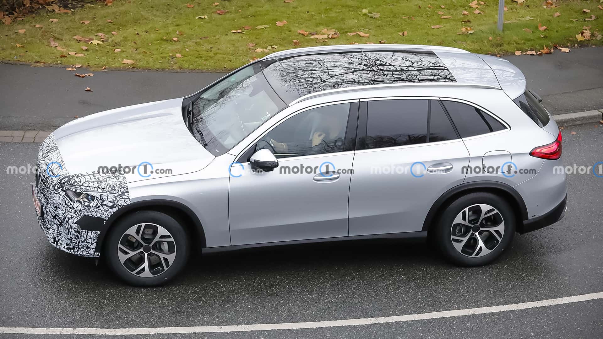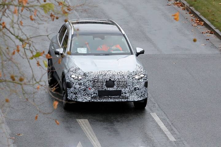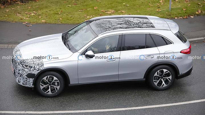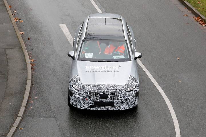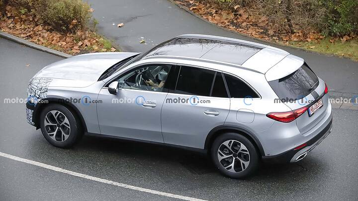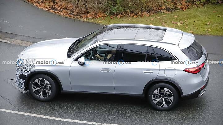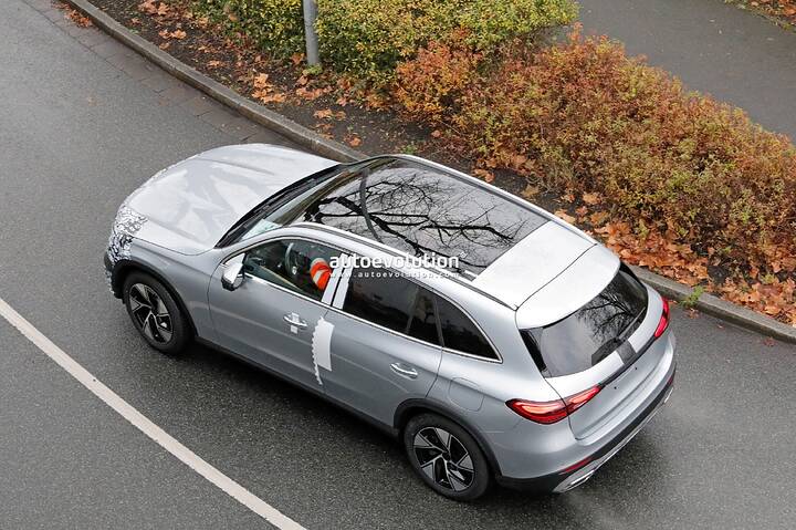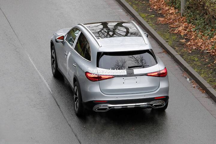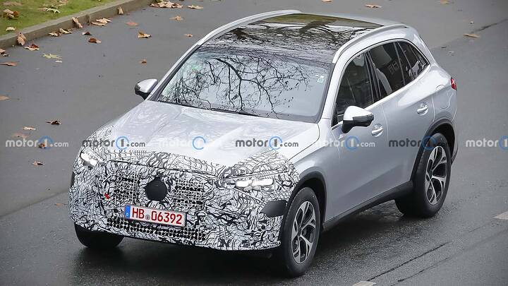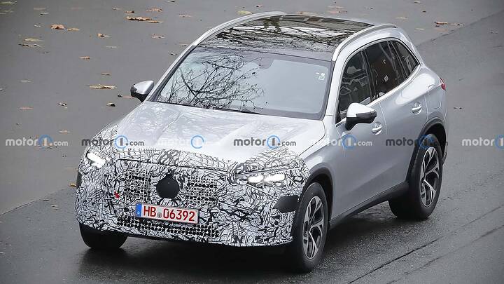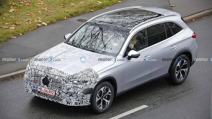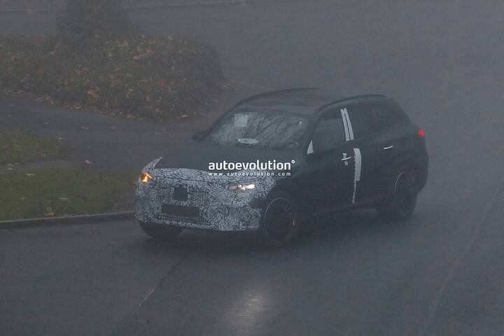 The Mercedes-AMG GLC undergoes a subtle facelift, as evidenced by spy shots of the 43 prototype with minimal camouflage, hinting at new star-shaped LED daytime running lights and potential updates to the infotainment system and interior.