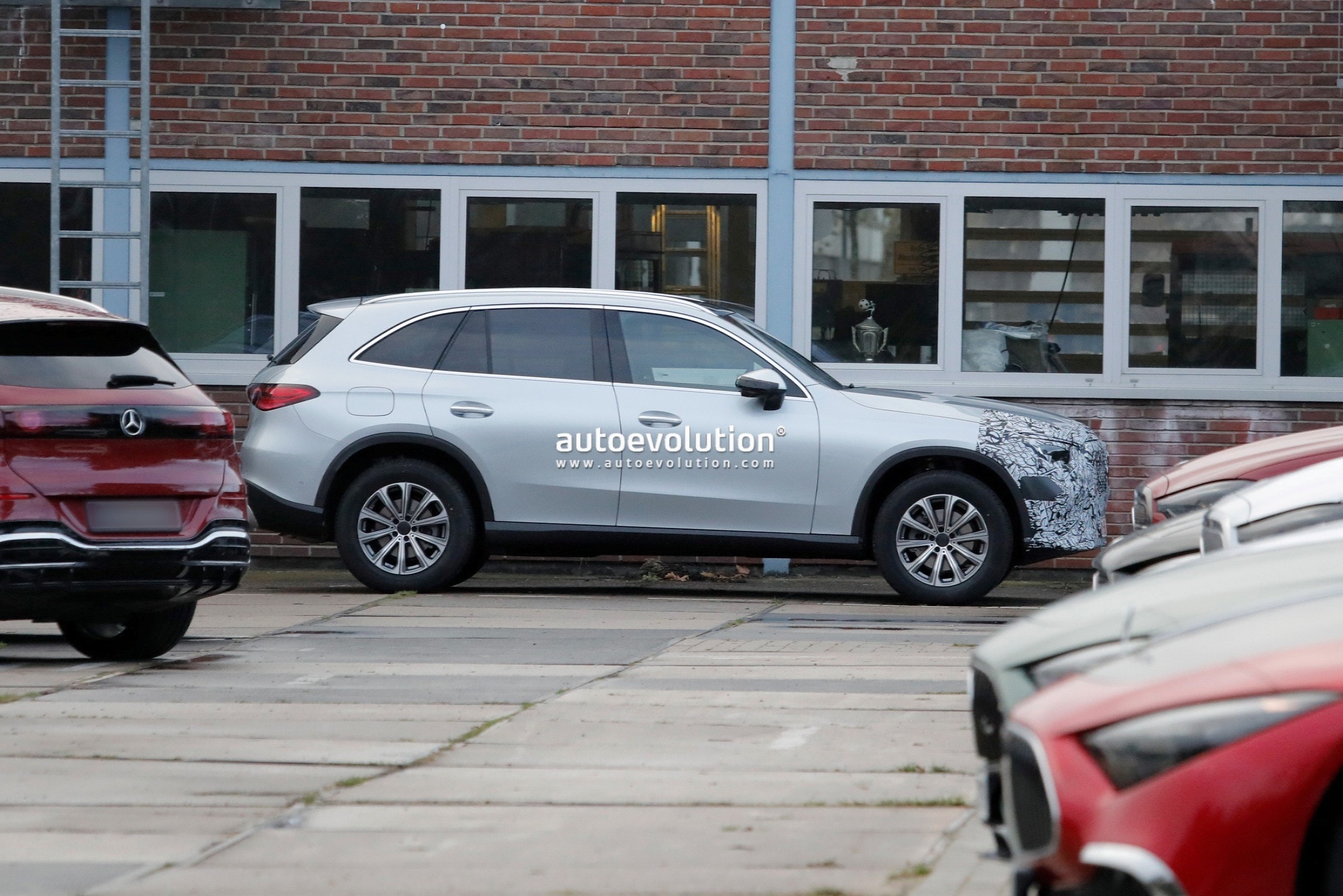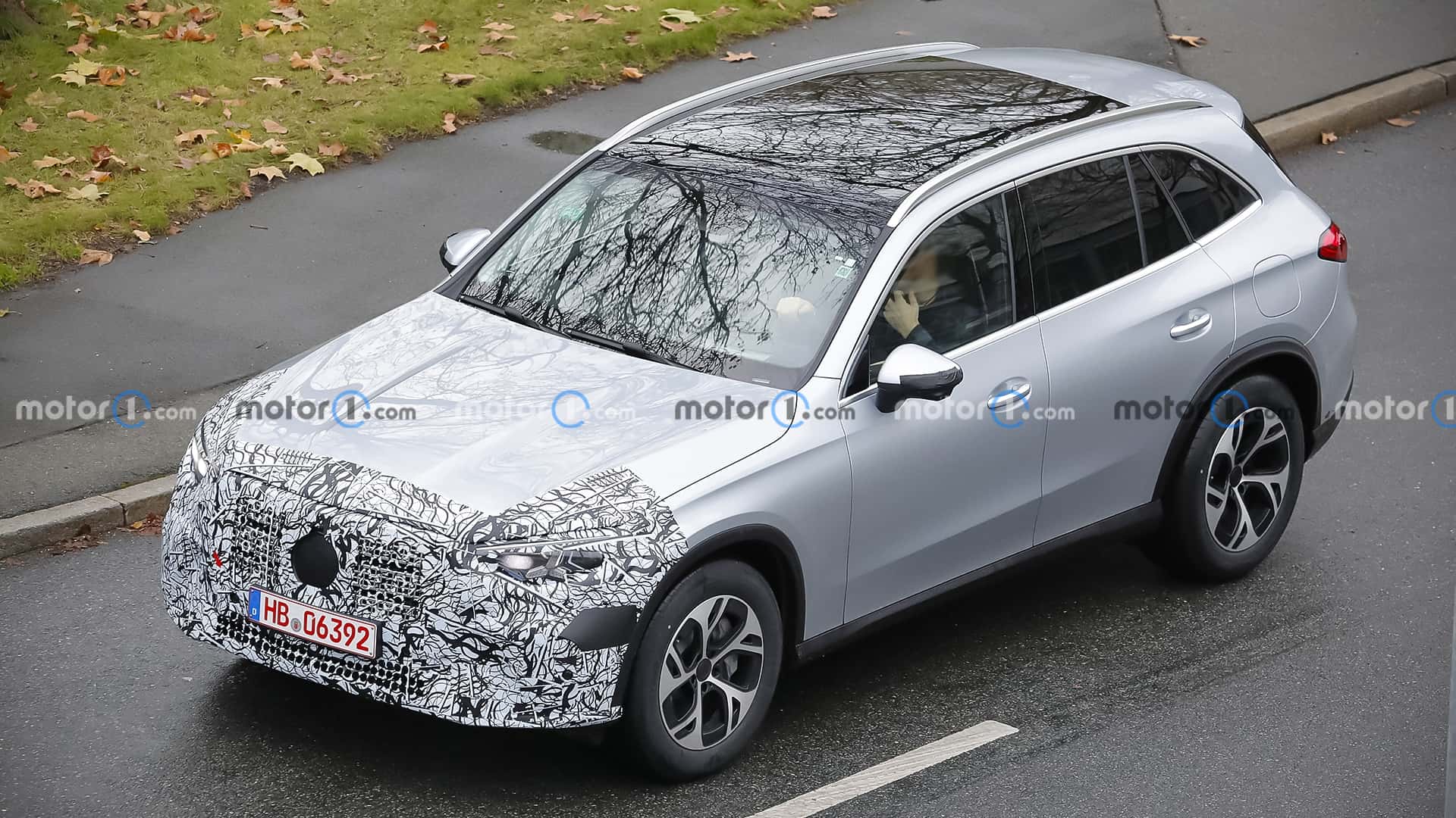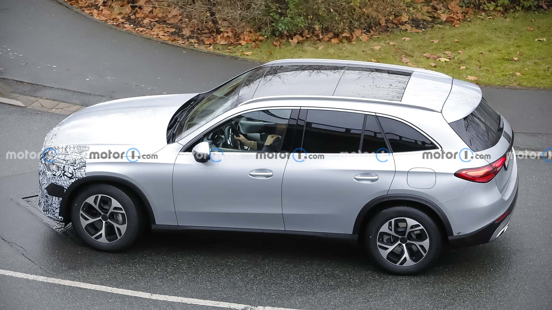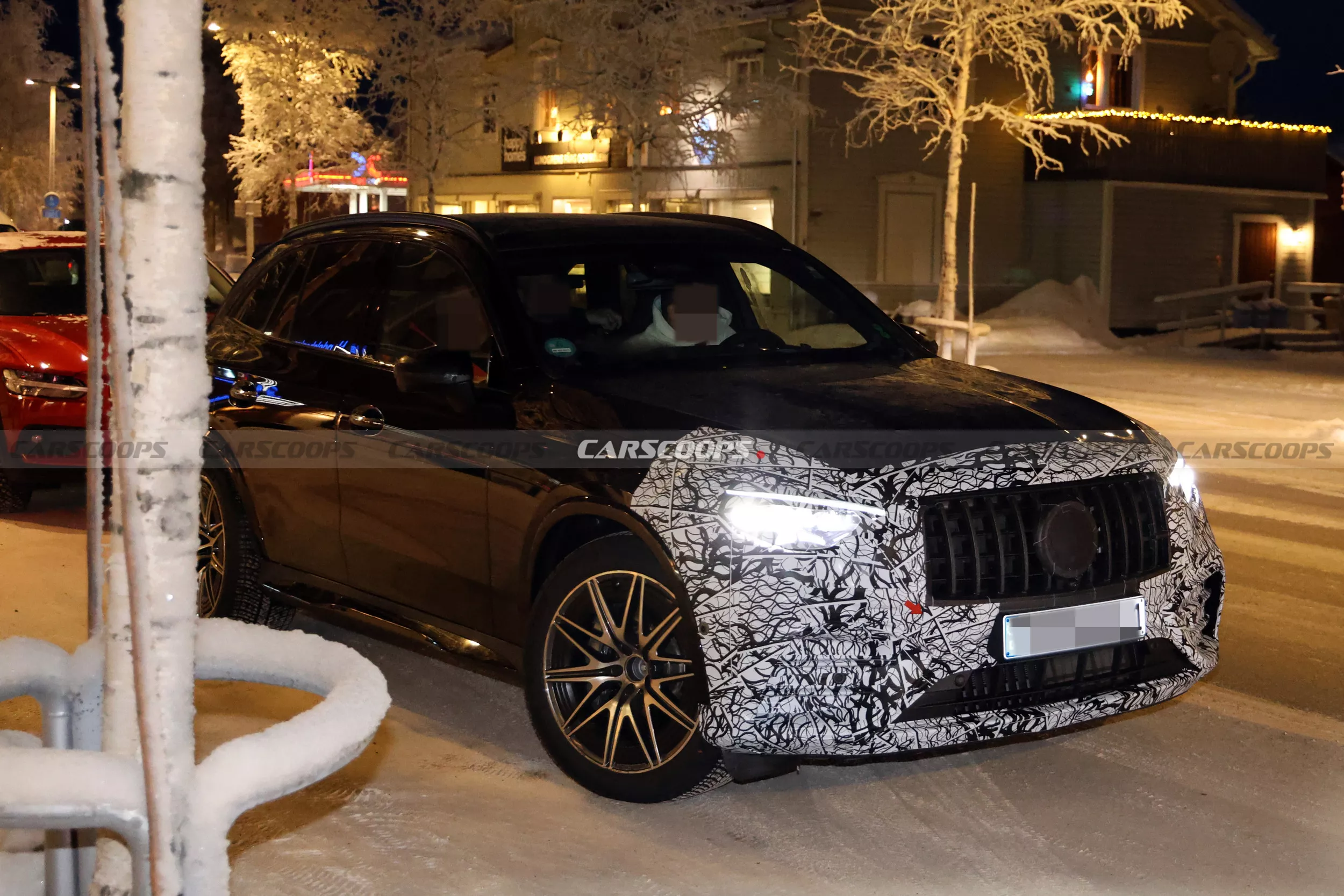 The Mercedes-AMG GLC undergoes a subtle facelift, as evidenced by spy shots of the 43 prototype with minimal camouflage, hinting at new star-shaped LED daytime running lights and potential updates to the infotainment system and interior.