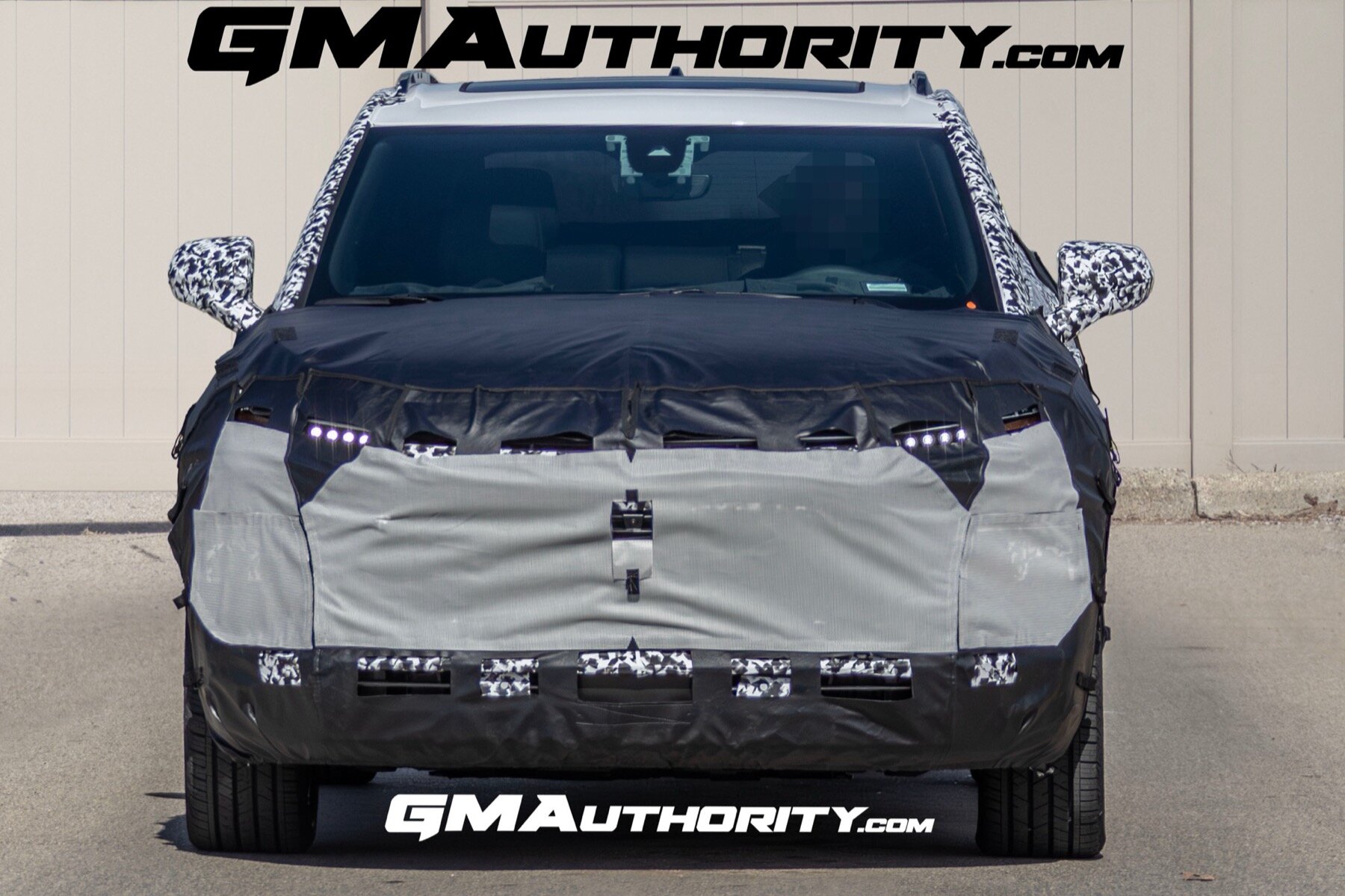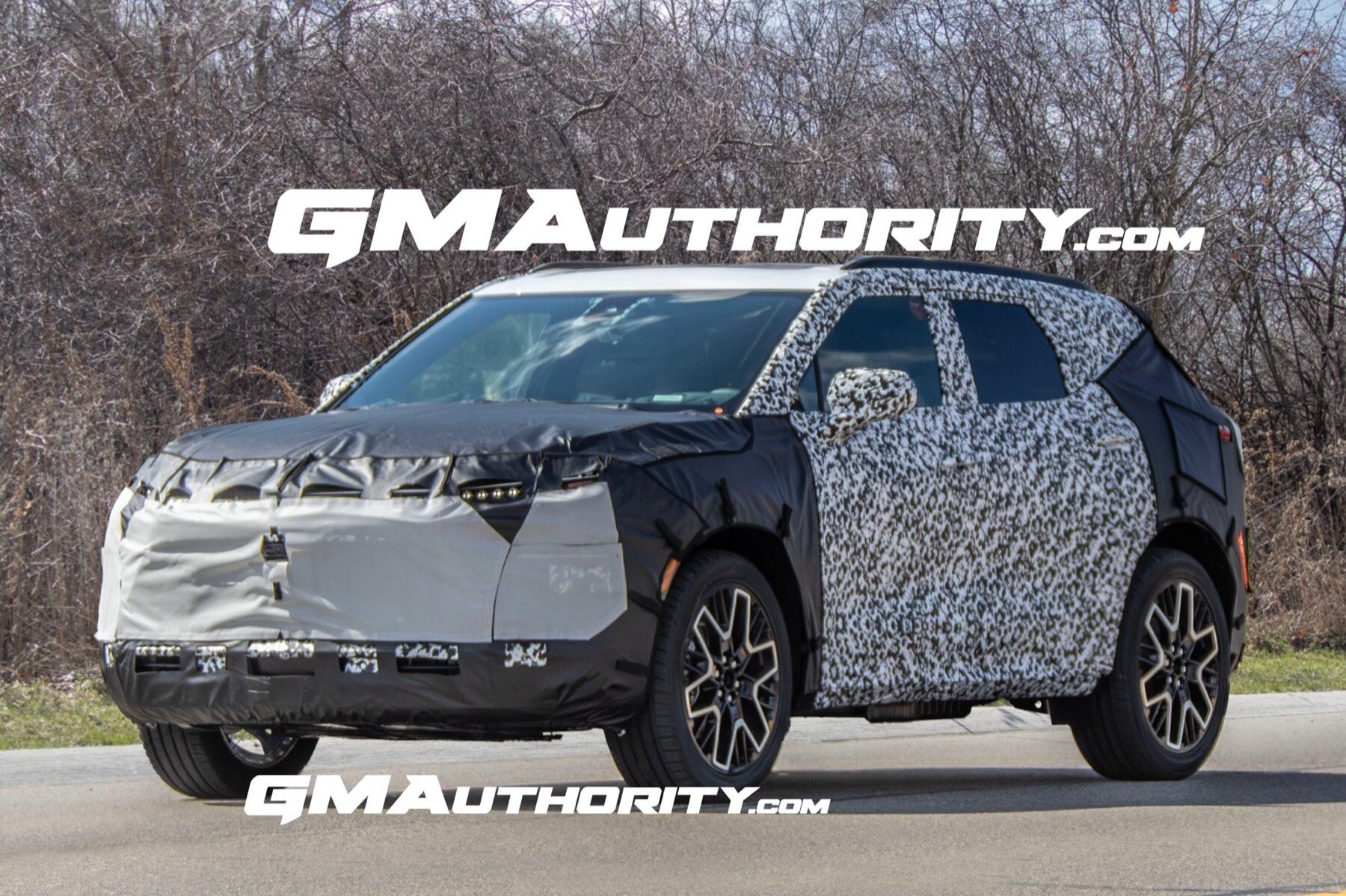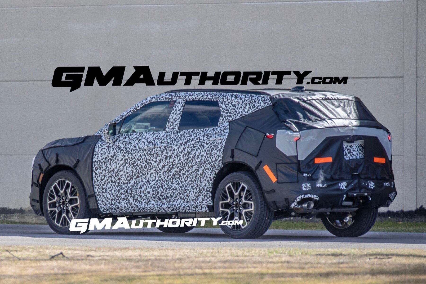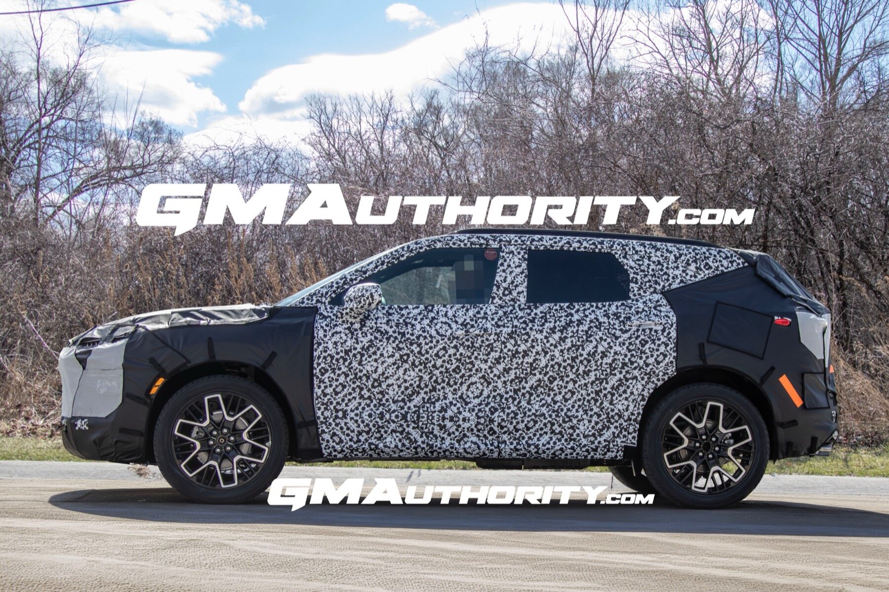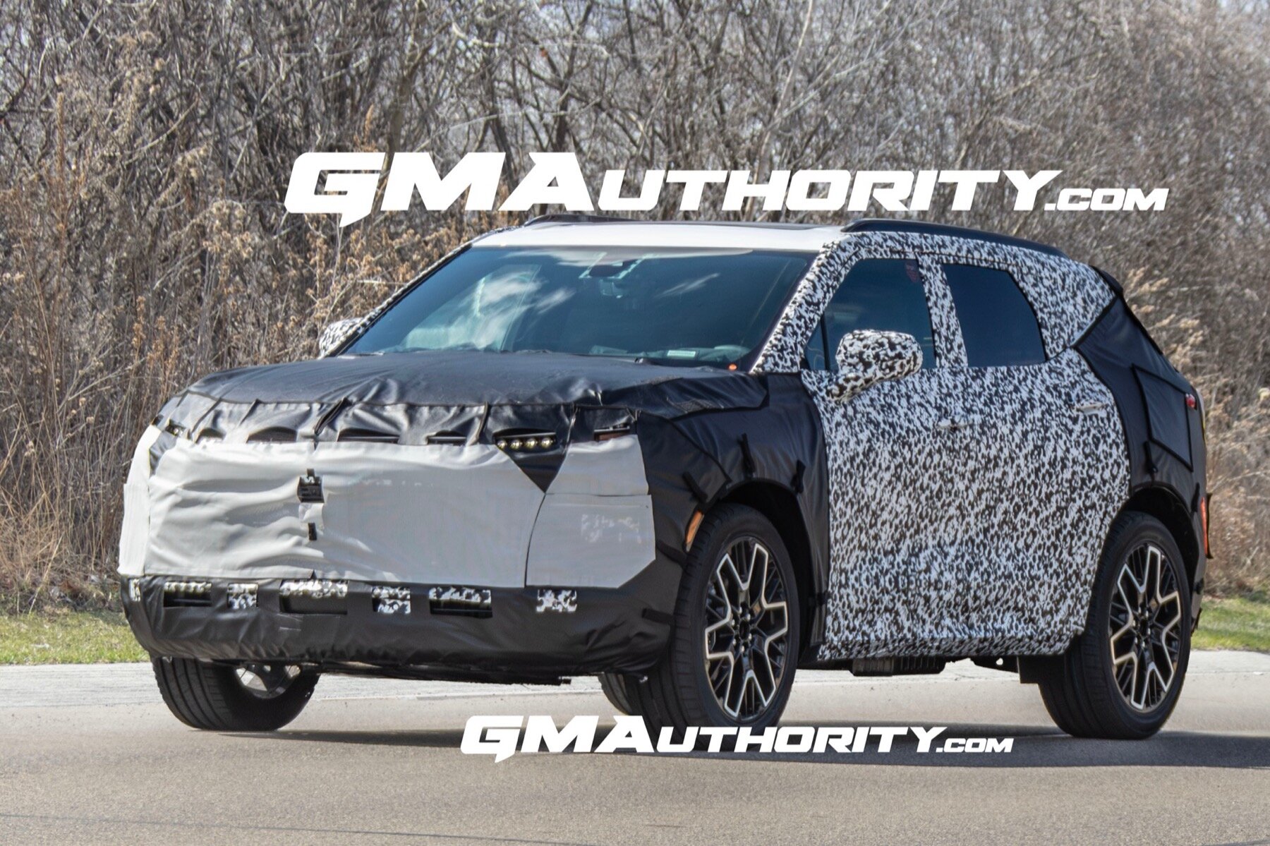 The prototype seen here is wrapped in a combination of heavy vinyl camo at the front and rear, and body-hugging checker-print camo on the sides. This tells us that the updates will be to the front and rear fascias, along with the interior, tech and the powertrain, with the overall body (including the bodysides) carrying over. So it’s fairly safe to conclude that the 2028 Chevy Blazer will be a significant refresh, and not a complete overhaul.
