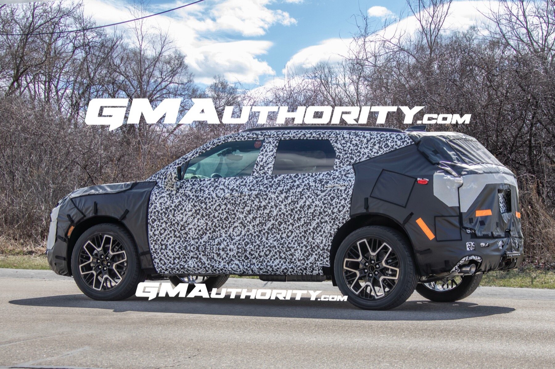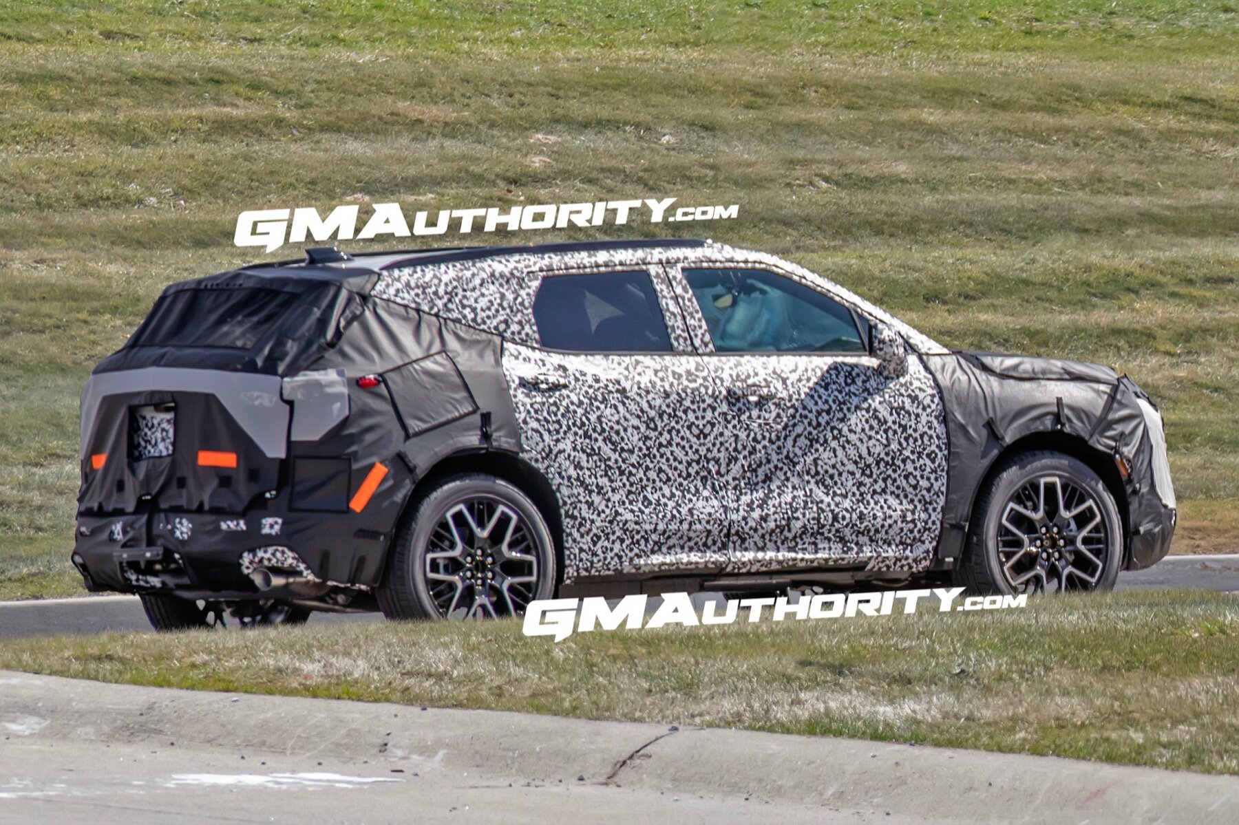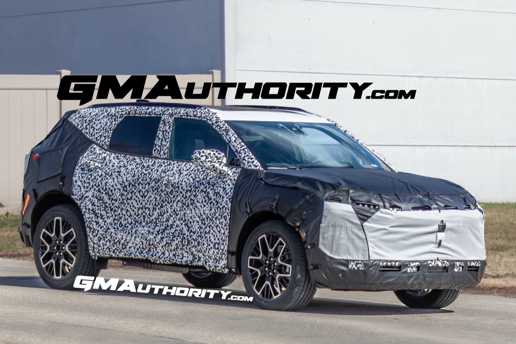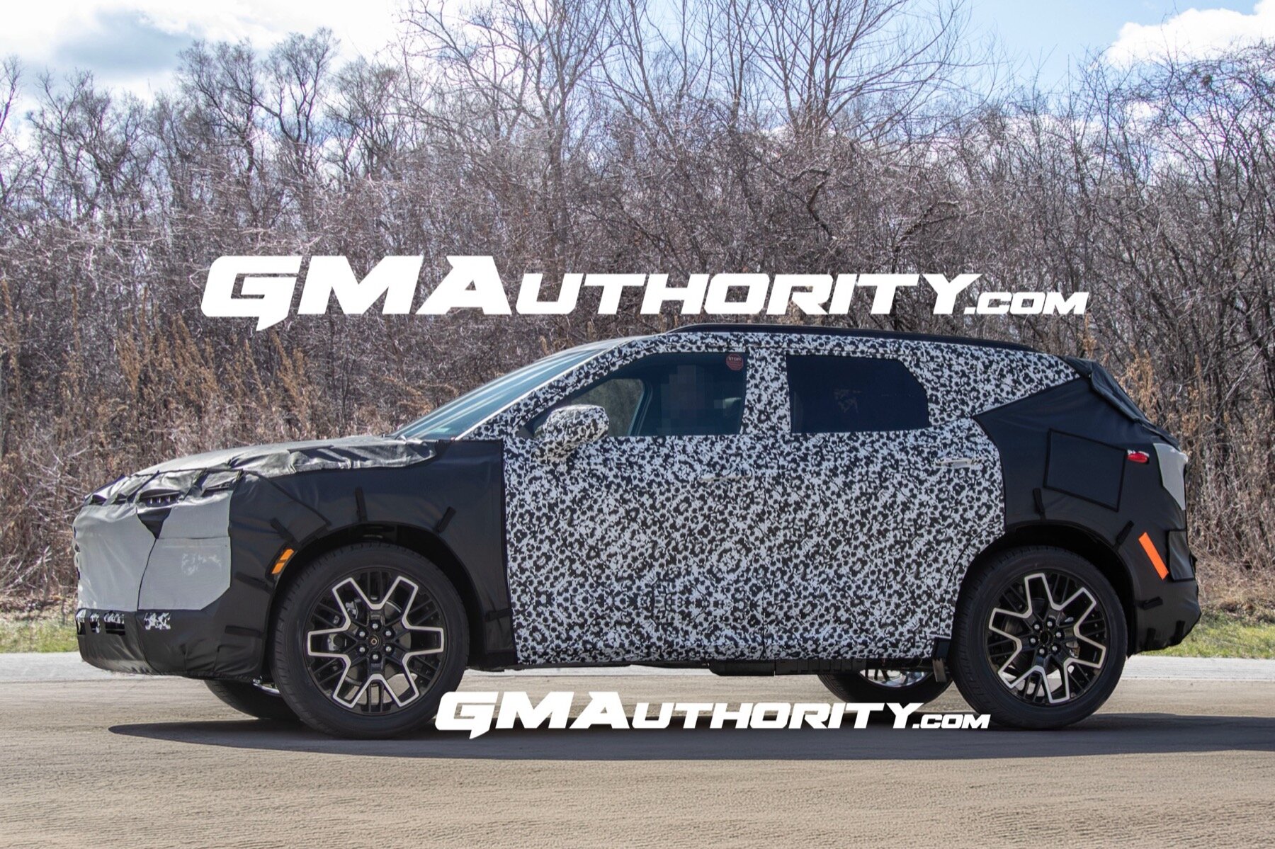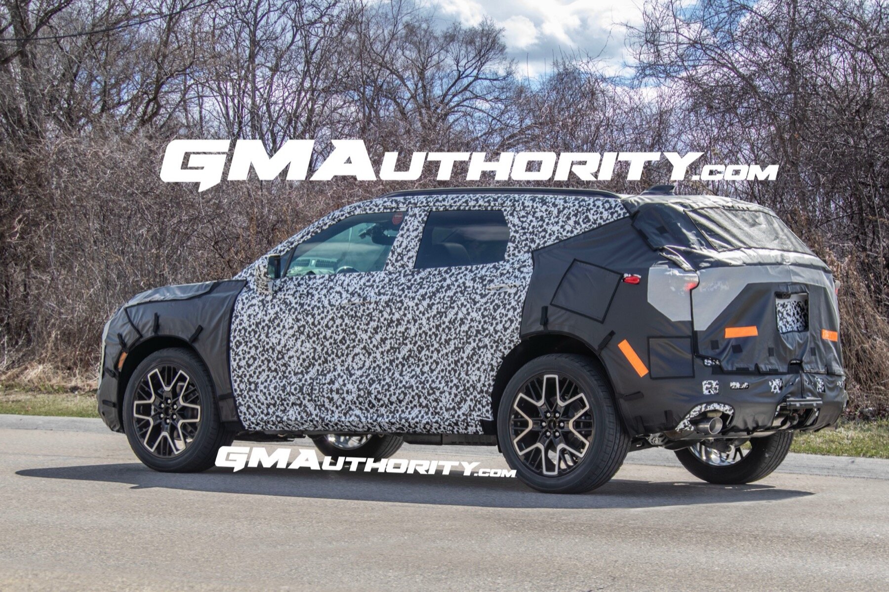 The prototype seen here is wrapped in a combination of heavy vinyl camo at the front and rear, and body-hugging checker-print camo on the sides. This tells us that the updates will be to the front and rear fascias, along with the interior, tech and the powertrain, with the overall body (including the bodysides) carrying over. So it’s fairly safe to conclude that the 2028 Chevy Blazer will be a significant refresh, and not a complete overhaul.