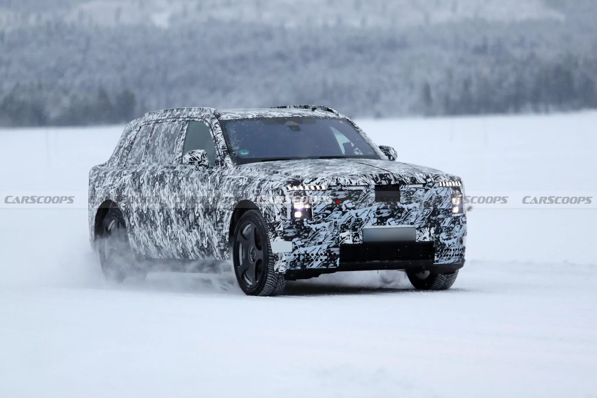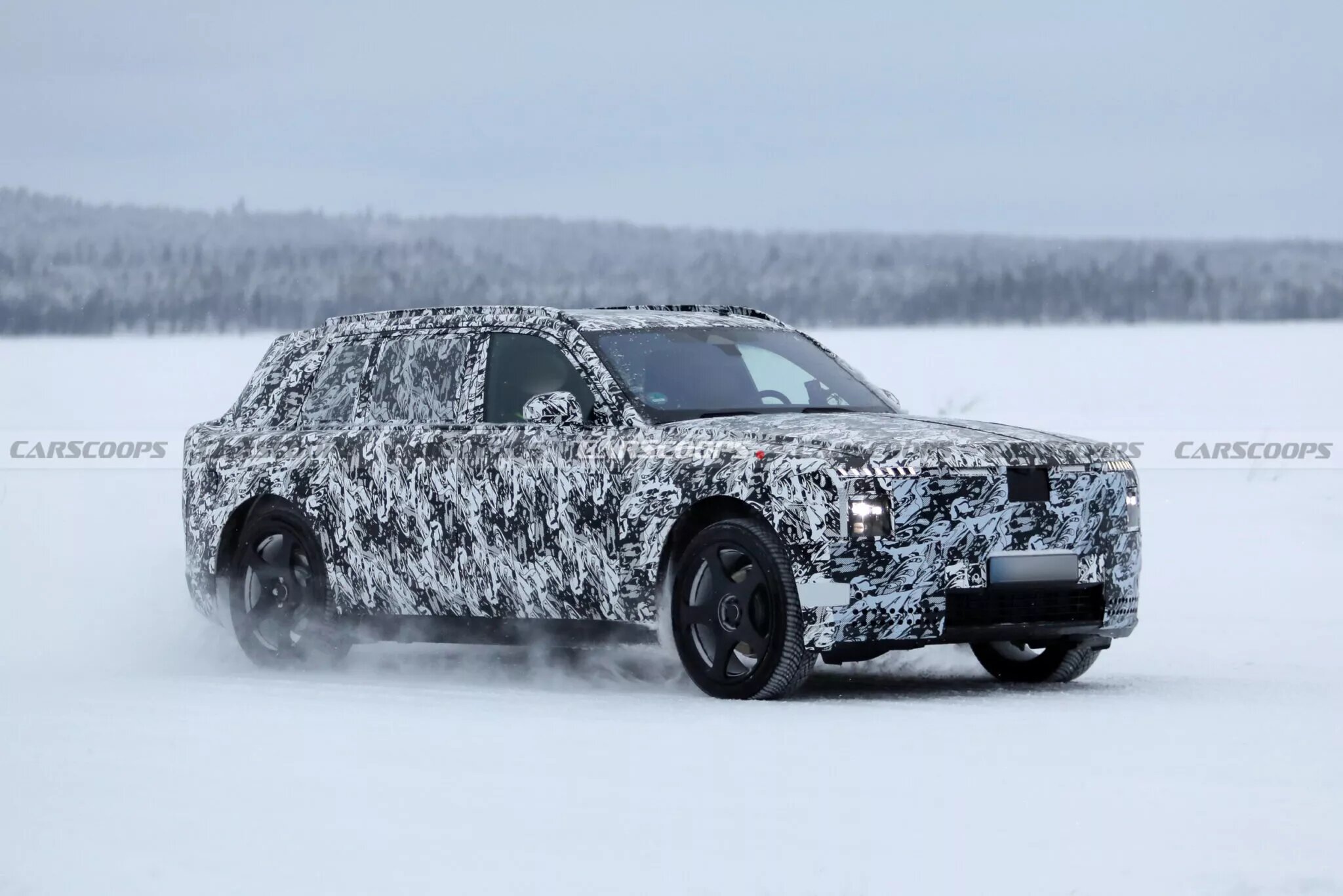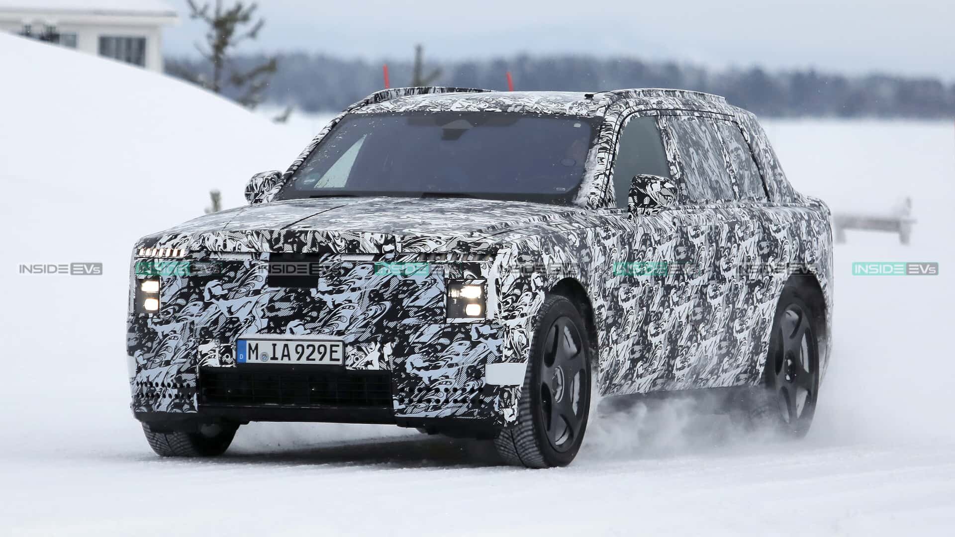 New Rolls-Royce Cullinan has been spied undergoing testing, it sports an evolutionary design with cues from the Spectre, The model will be fully electric and could have around 600 hp.