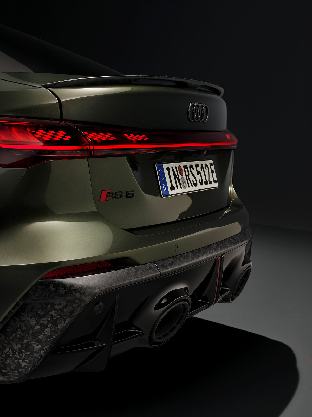 Its lighting technology reinforces the unmistakable character of the RS 5*. The second-generation digital OLED rear lights make a convincing statement for design and functionality. The exclusive light signature is designed to look like a checkered flag.