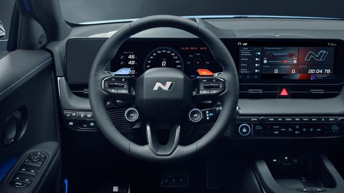 Several exclusive features aid track performance. N Grin Boost maximizes acceleration by a power increment of 10 seconds and N Launch Control provides three different traction levels for the fastest possible start, allowing drivers to launch their vehicle like a professional race car. Track SOC (state-of-charge) automatically calculates battery consumption per lap.